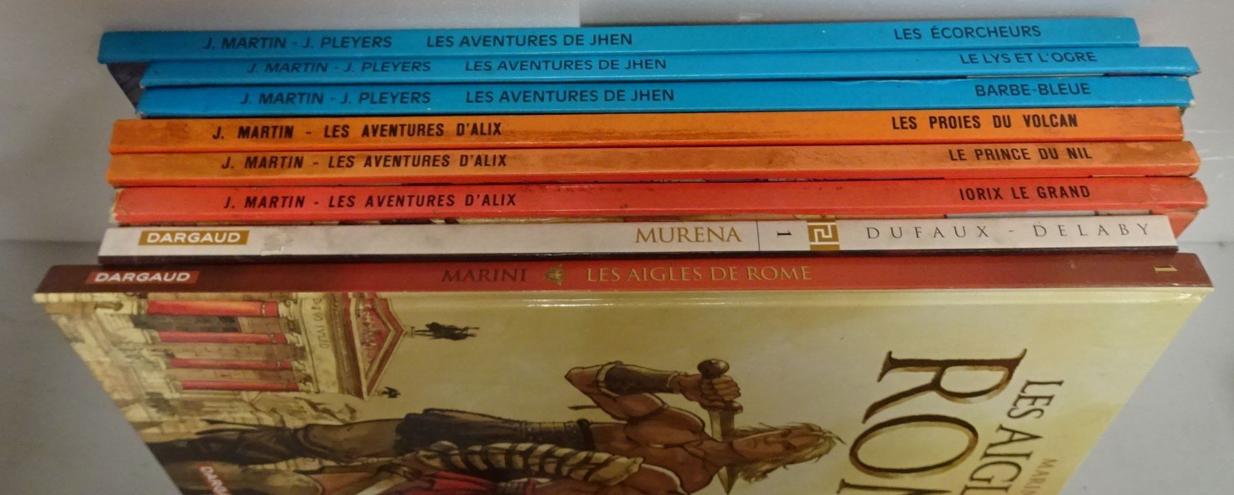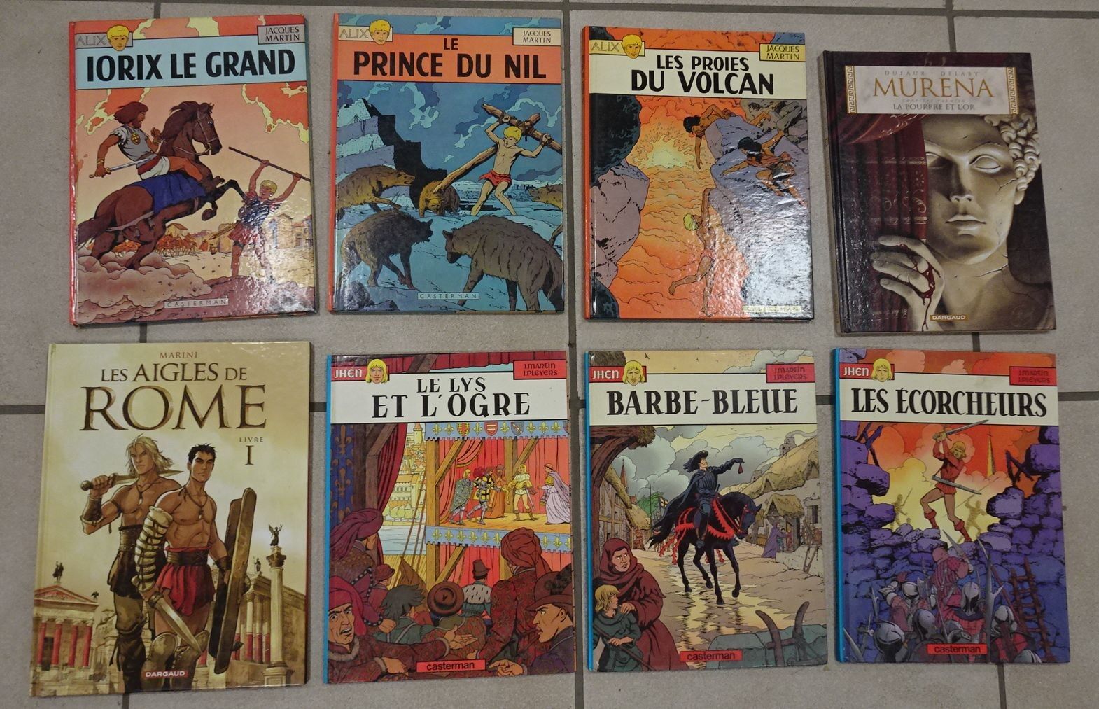 Lot de 8 Albums : 3/Jacques Martin. ALIX./ Le prince du Nil et Les proies du volcan en E.O. Iorix le grand + 1/Dufaux-Delaby. Murena + 1/Mrini. Les aigles de Rome. Tome 1 + 3/Jhen. Barbe-bleue. Le lys et l'ogre. Les écorcheurs