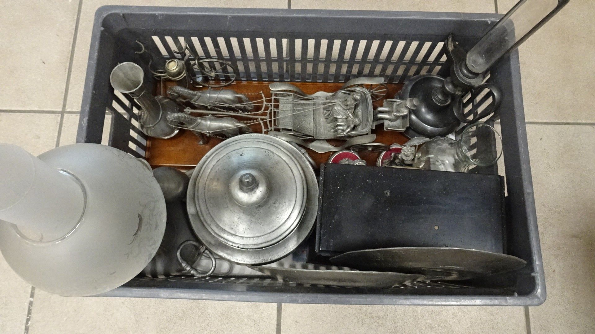 Lot d'objets de décoration en étain.