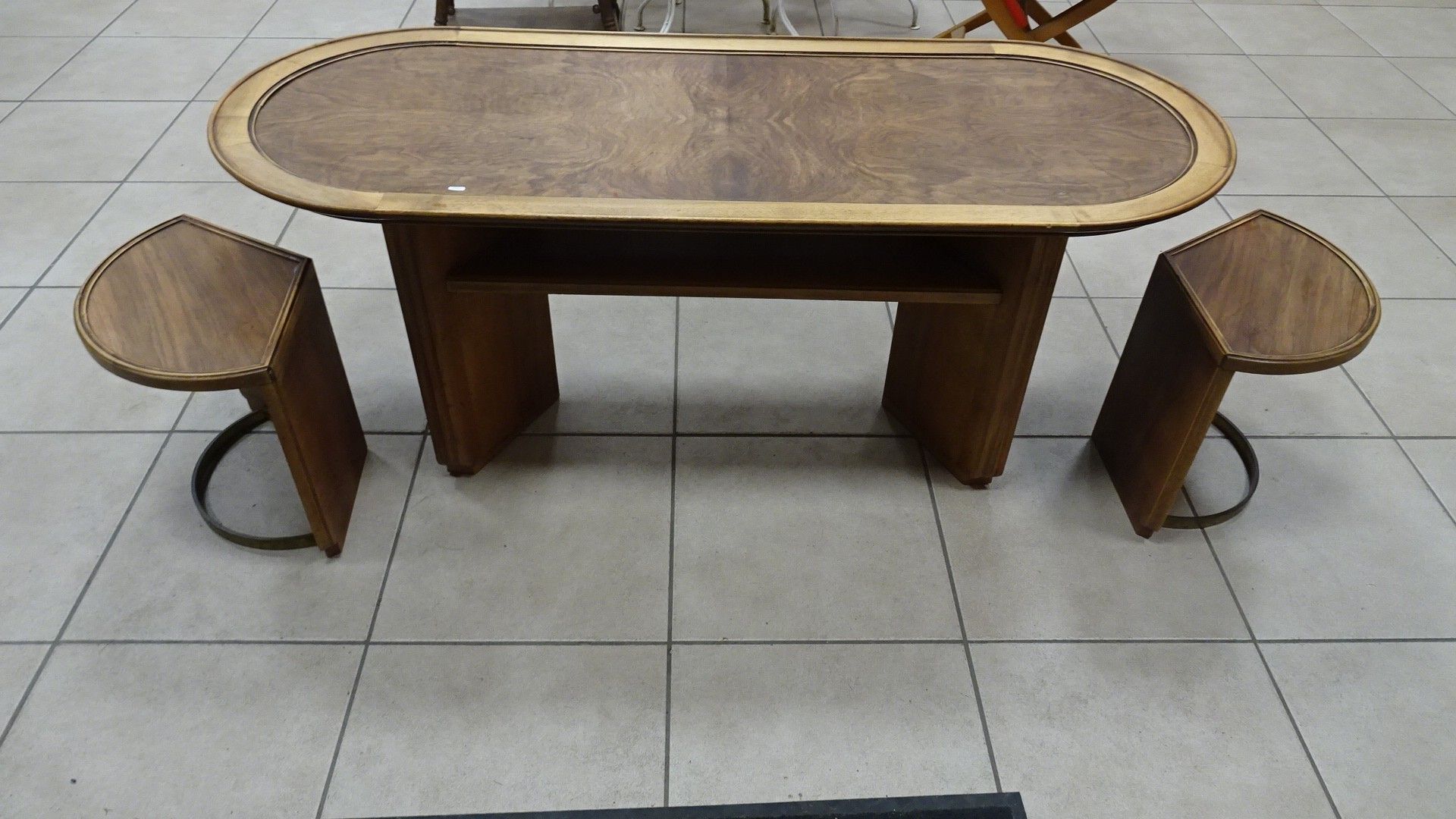 Table basse ovale en palissandre.