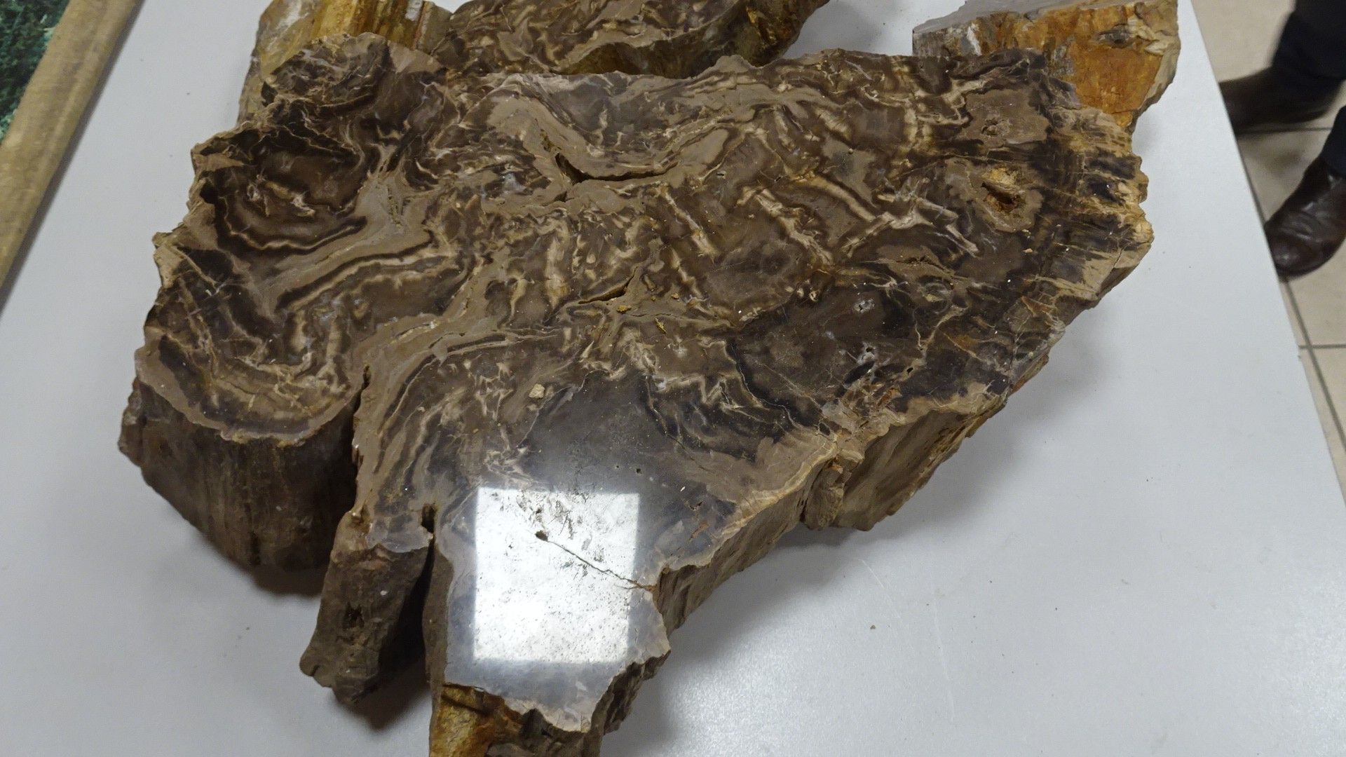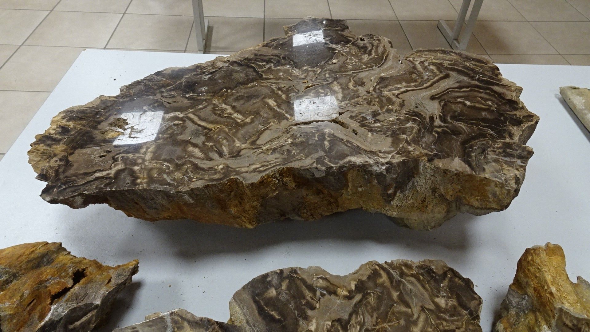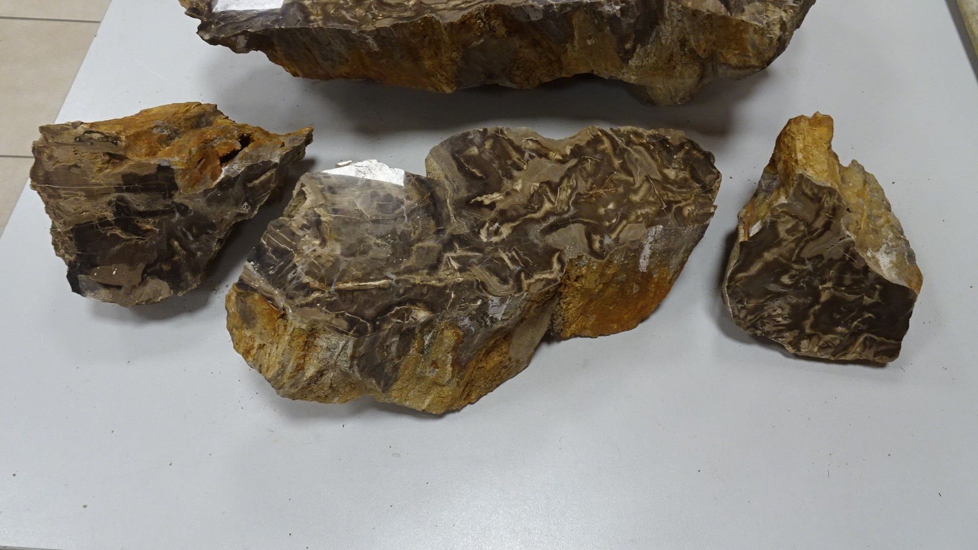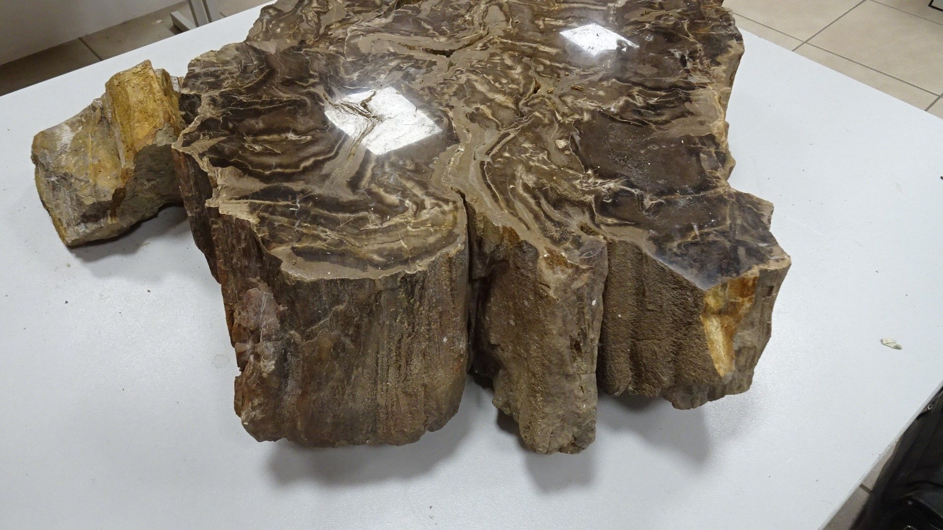 Important Bois fossilisé silicifié. Haut 16 x 58 x 42 cm + 3 fragments du même morceau