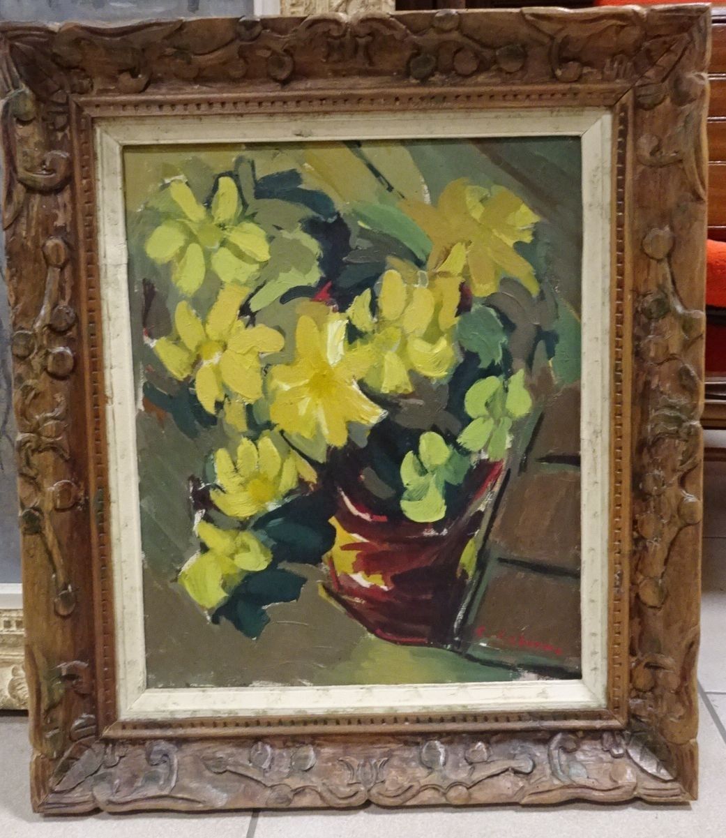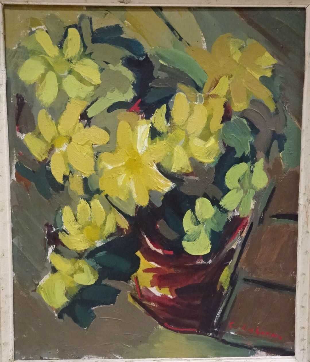 Charles LABERNE. XX°. Bouquet de fleurs. Huile sur toile. Signée en bas à droite. 45 x 38 cm