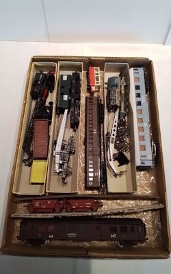 Lot de 3 wagons de marchandises, 3 grues et divers, certains…