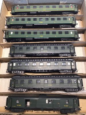 7 voitures voyageurs PLM, certaines provenant de JOUEF Lot v…