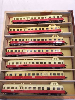 Lot de 5 voitures lits, 1 voiture restaurant, 1 wagon à baga…