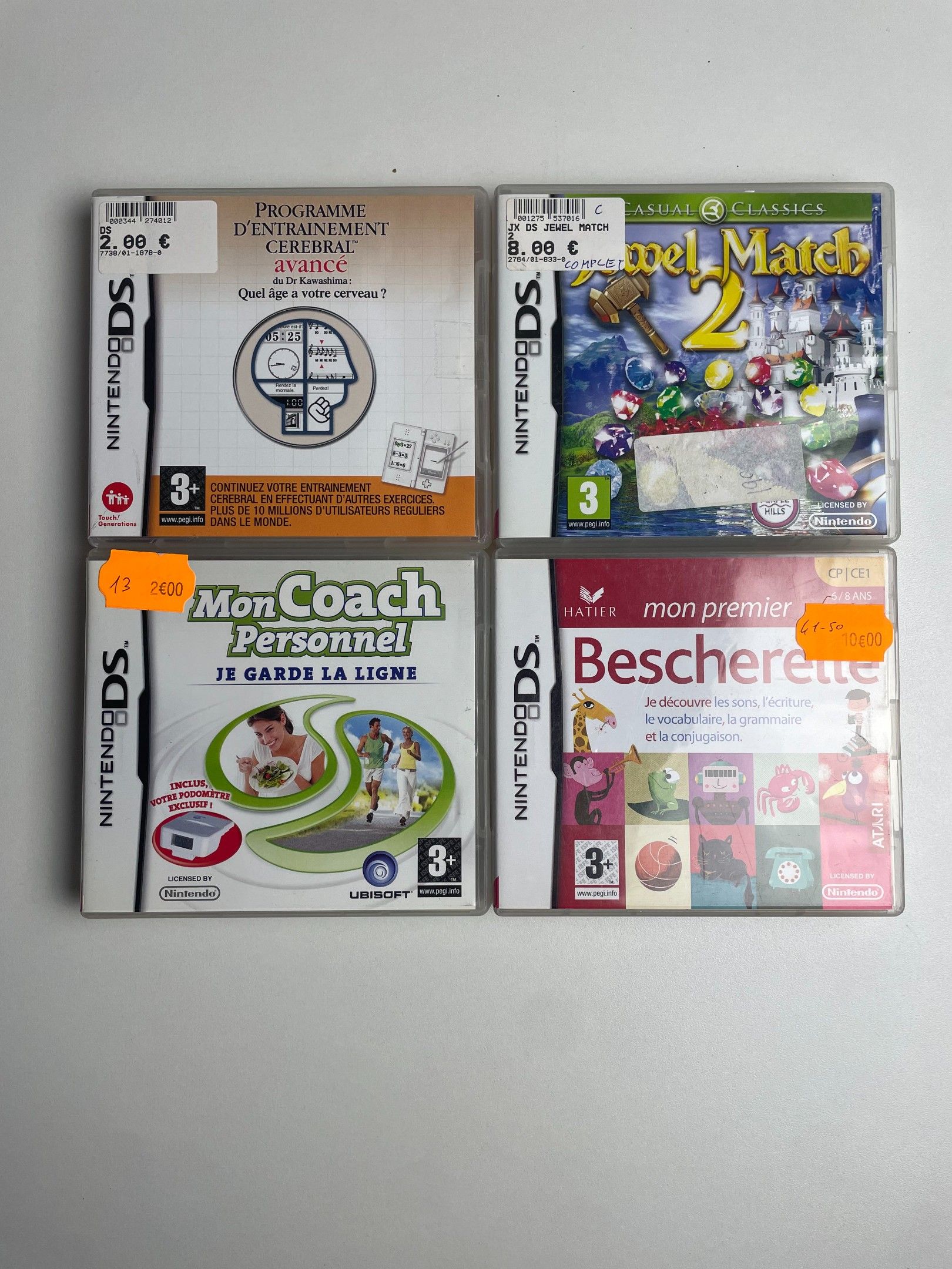 Lot de jeu de Nintendo DS Programme d'entrainement cérébral avancé/Jewel Match 2/Mon coach personnel je garde la ligne/Bescherelle