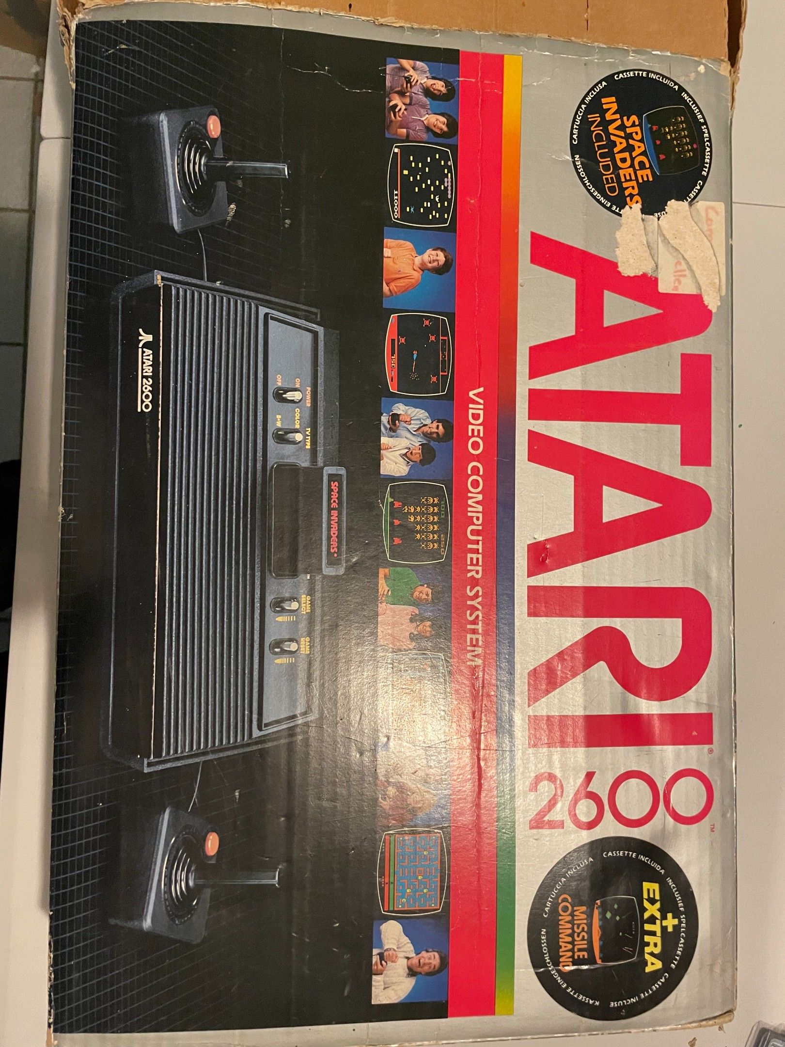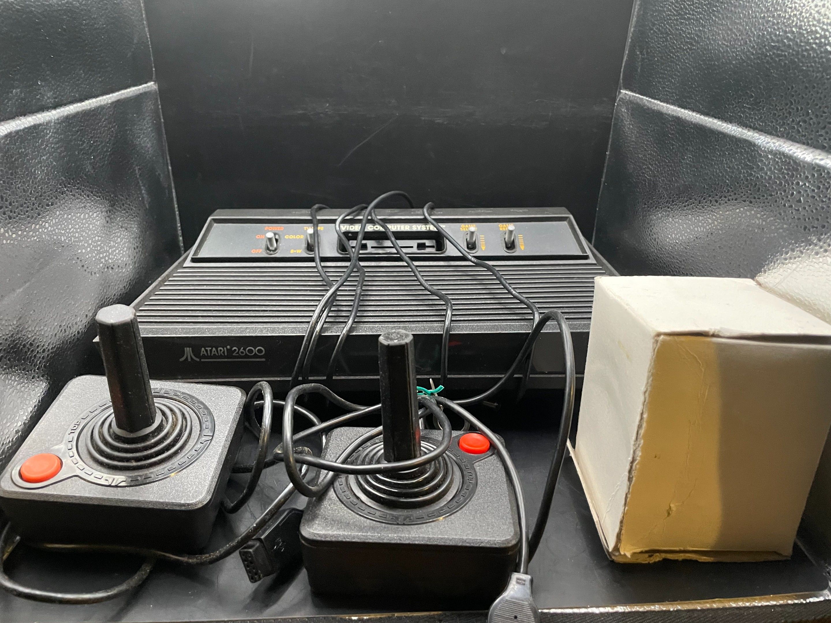 Console Atari 2600 dans sa boite d'origine (câbles et deux manettes comprises)