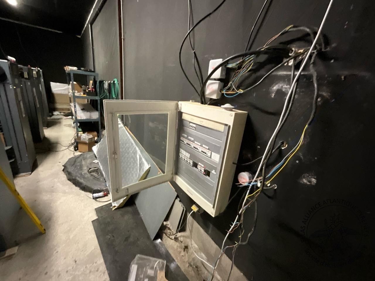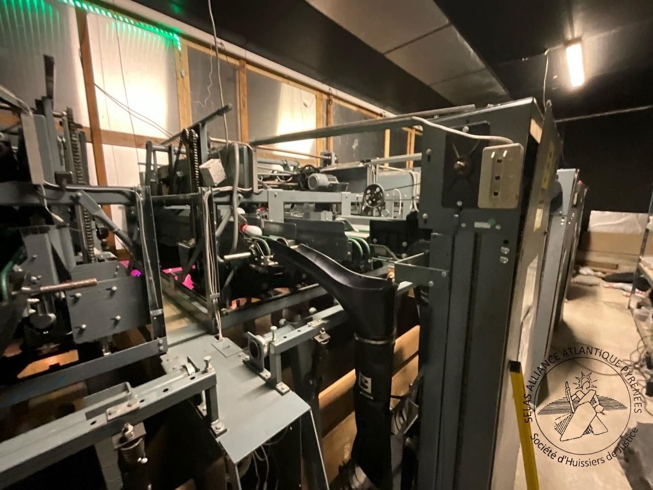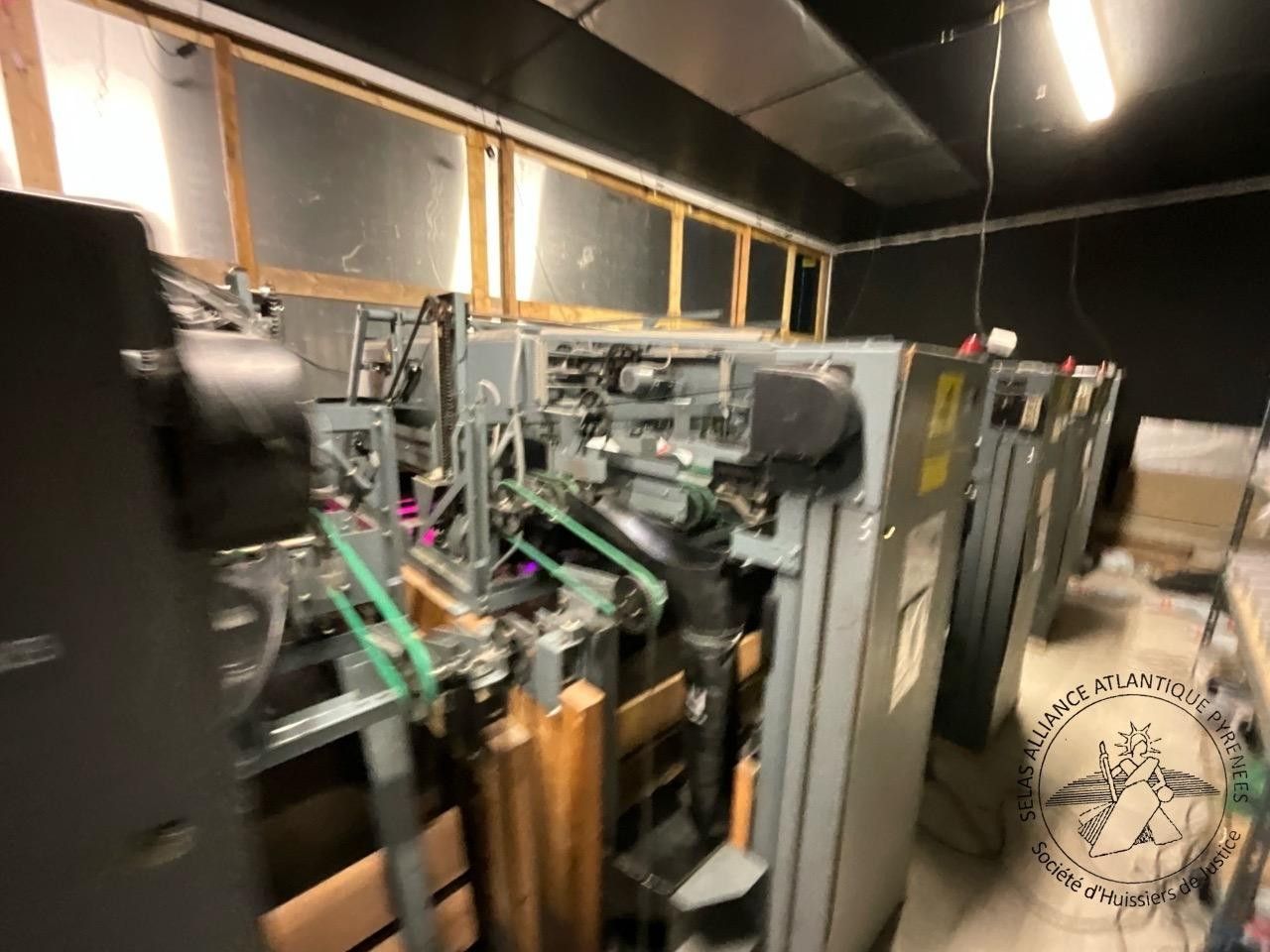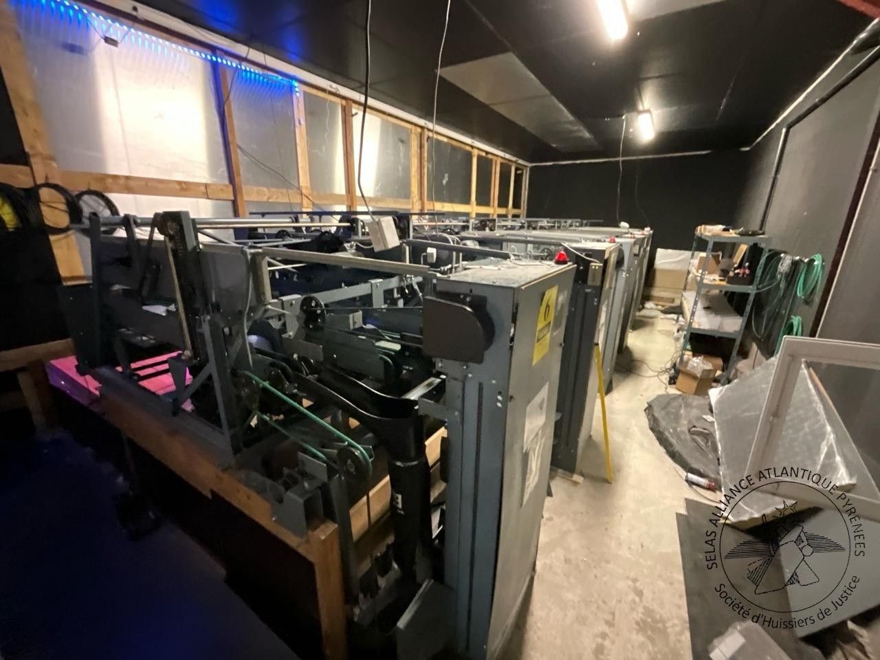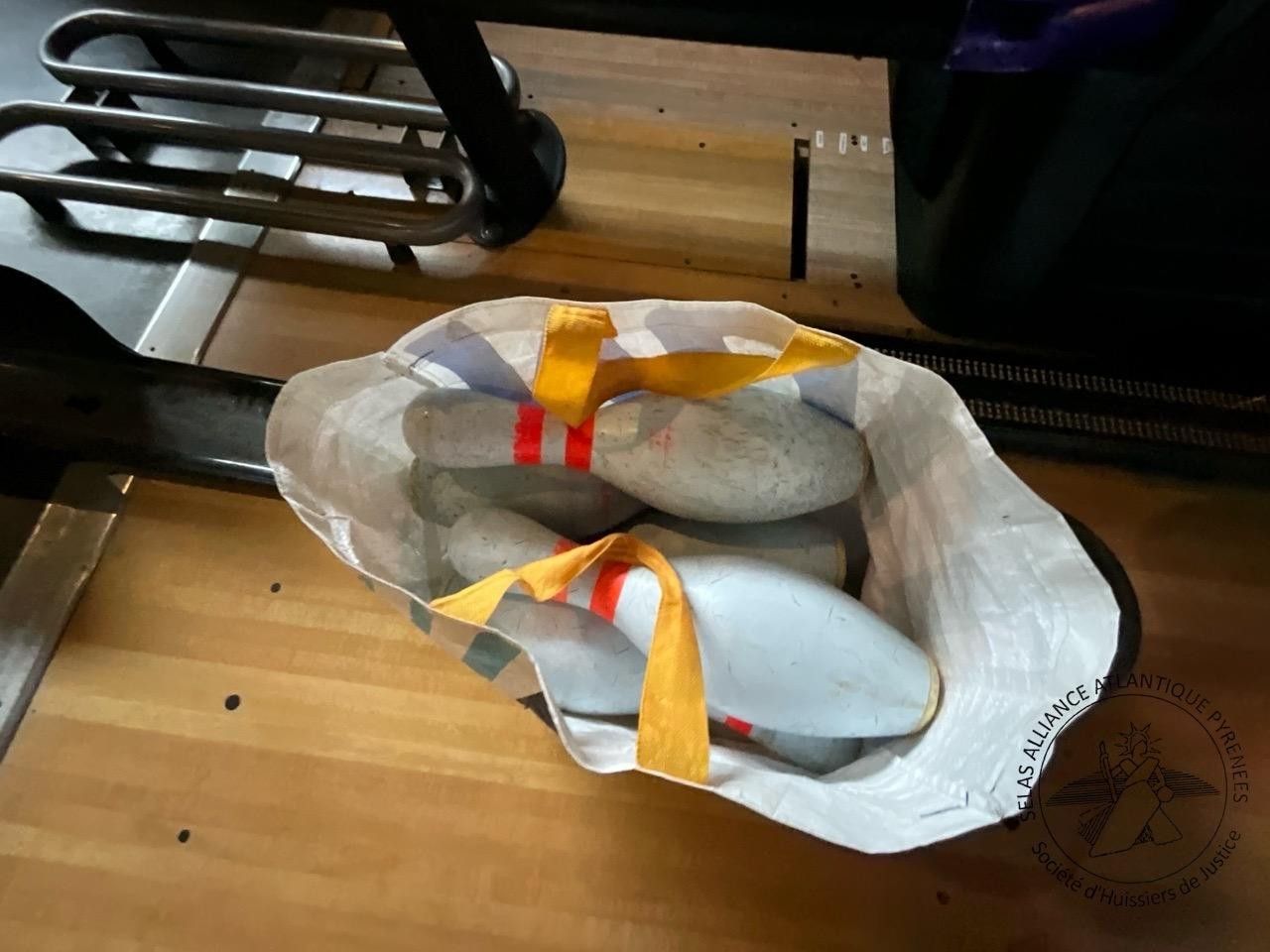 Structure de bowling composée de 6 pistes, 3 distributeurs de boules, bancs en bois, lot de chaussures, lot de boules, petit mobilier.