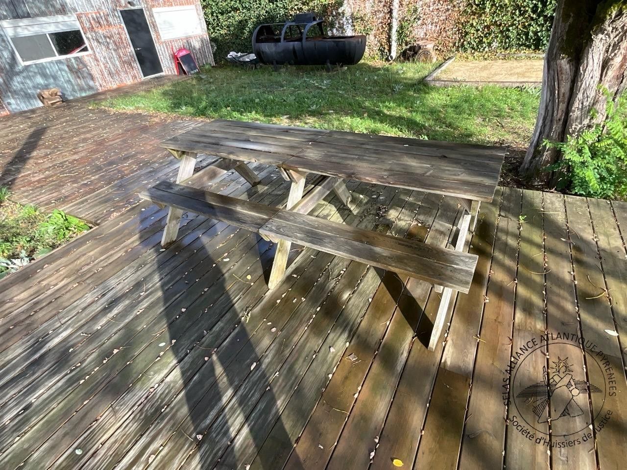 Lot de terrasse en bois et table de camping comprenant :