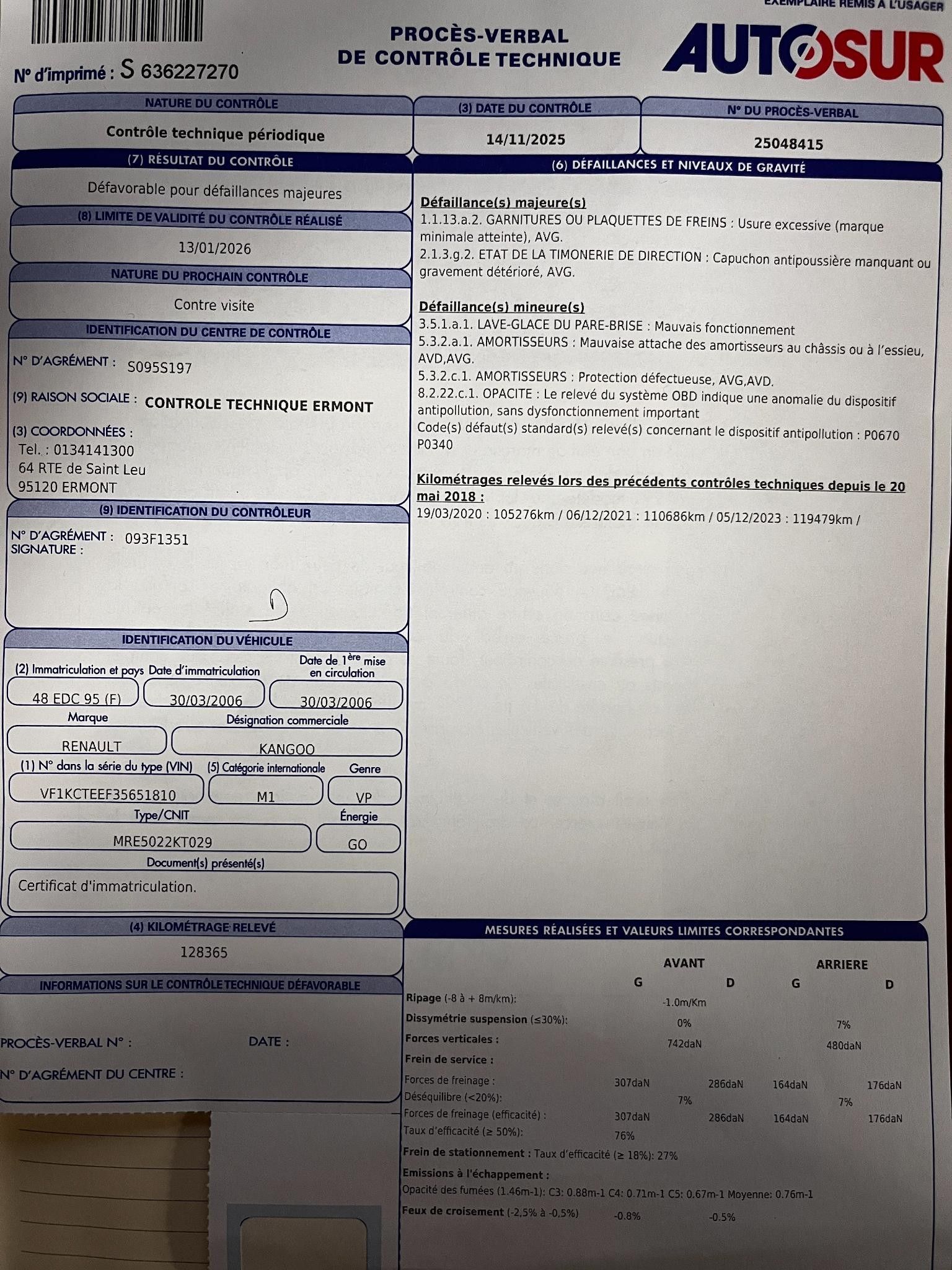 RENAULT KANGOO Boite manuelle Kilométrage : 128 365 kms
