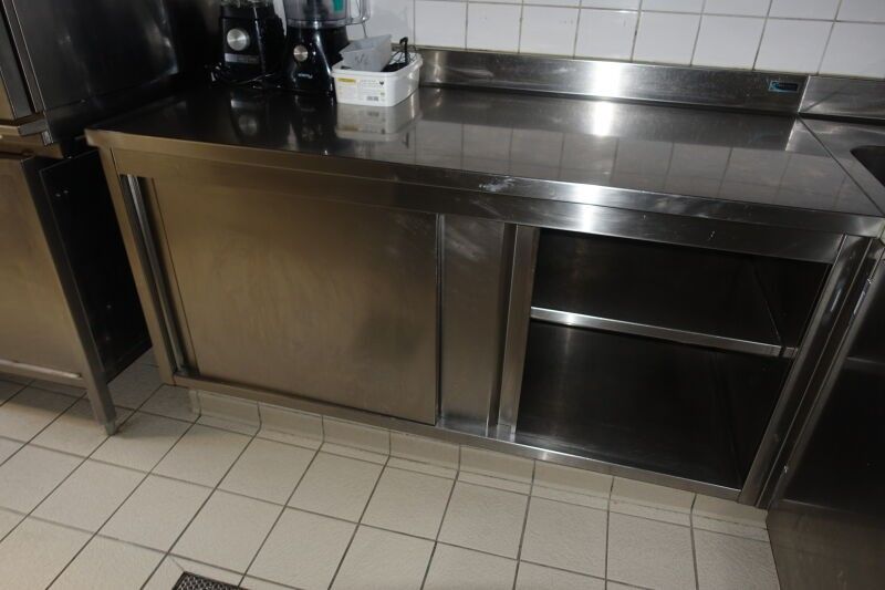 SUR DESIGNATION : Un meuble inox deux portes coulissantes et dosseret