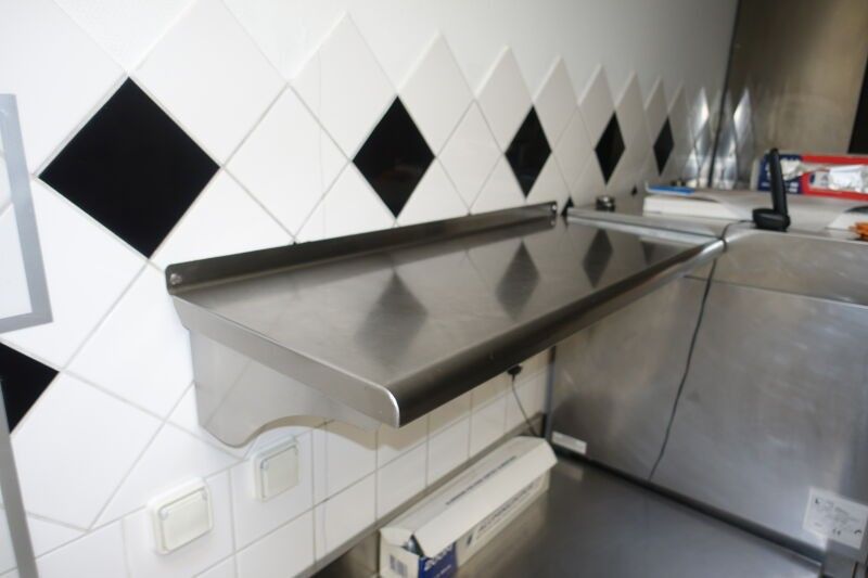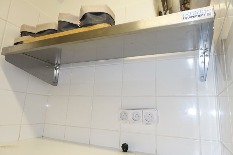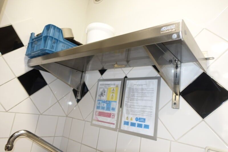 SUR DESIGNATION : Une armoire murale inox deux portes coulissantes, trois étagères inox murales
