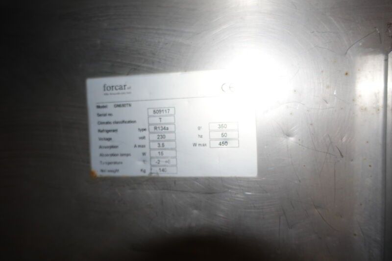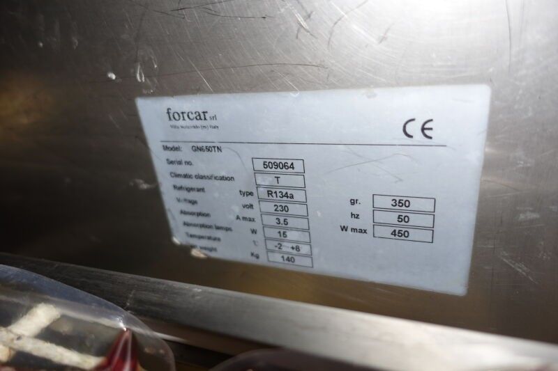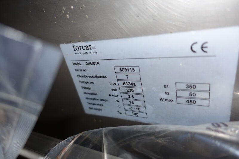 SUR DESIGNATION : Trois armoires inox réfrigérées FORCAR modèle GN650TN n°de série 509115 / 509064 /509117 (dont une défaillante)