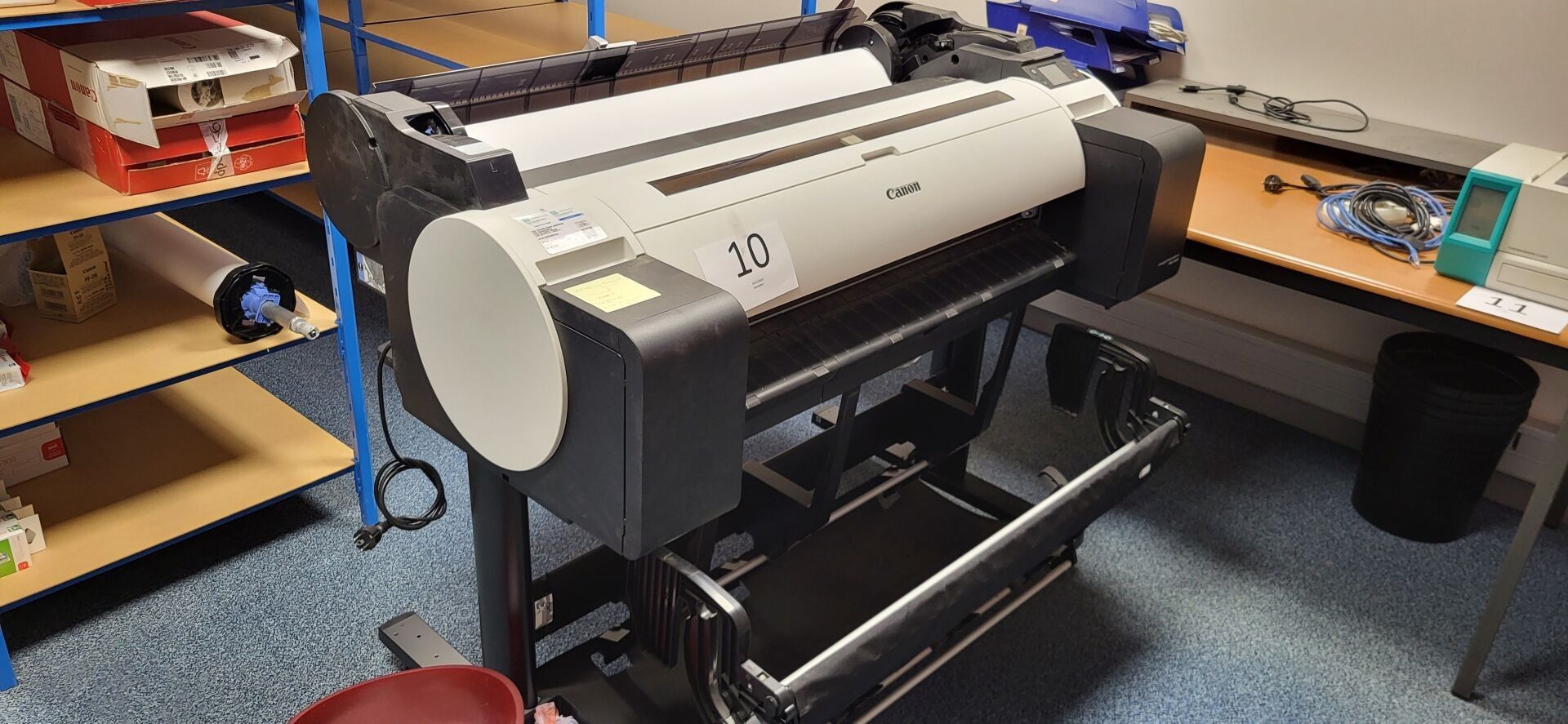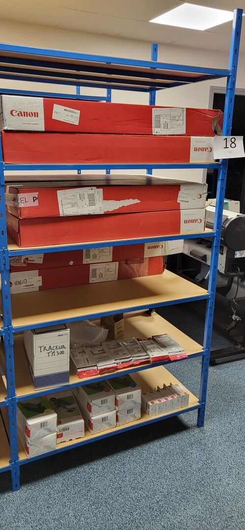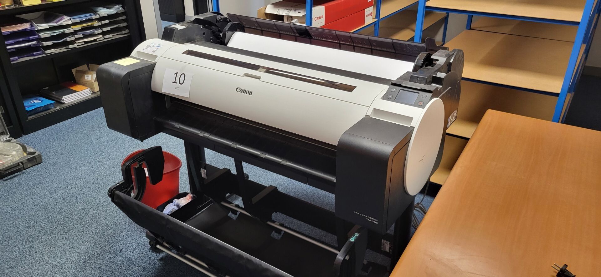 1 imprimante CANON K10488 - image prograf TM-300 130 x 90 cm avec environ 20 rouleaux de 50 m et 19 réservoirs d'encre différents modèles