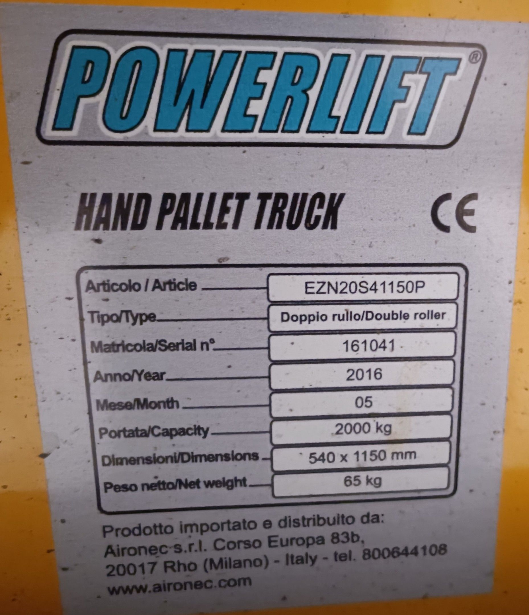 Transpalette manuel POWERLIFT Réf: EZN20S41150P - année: 2016 - cap. 2000kg