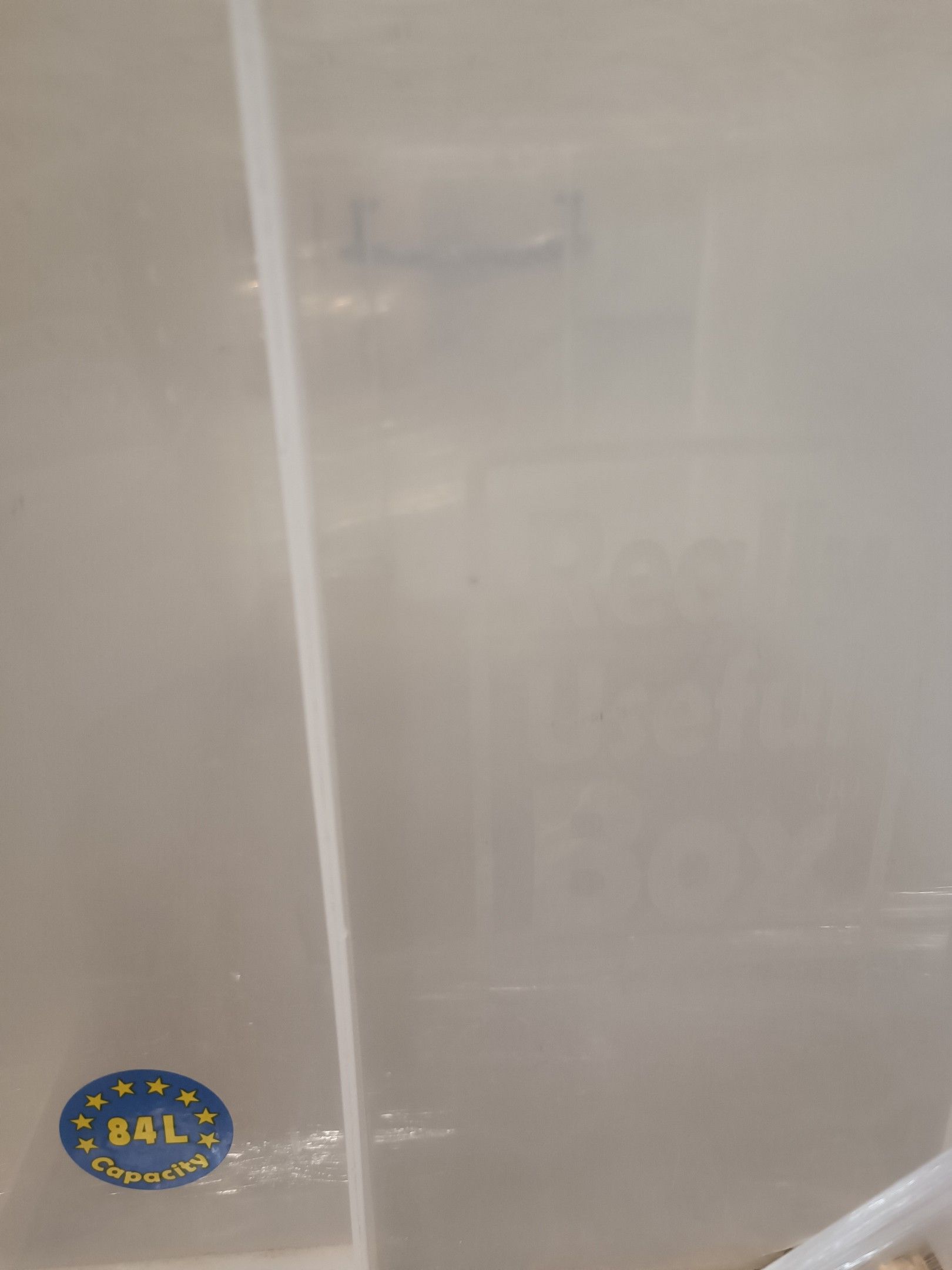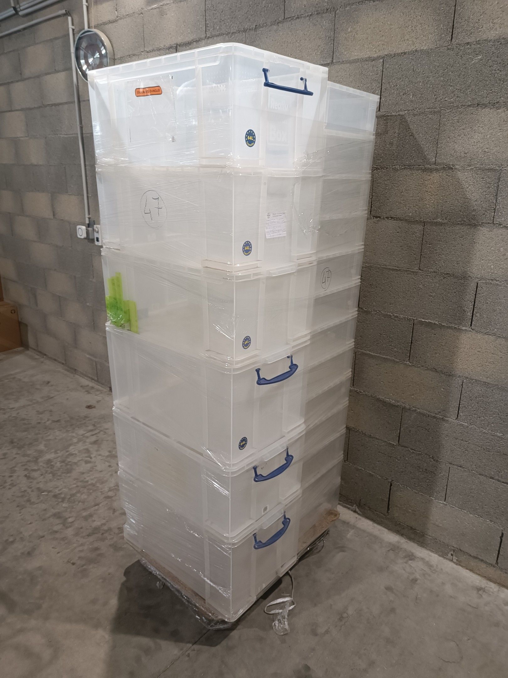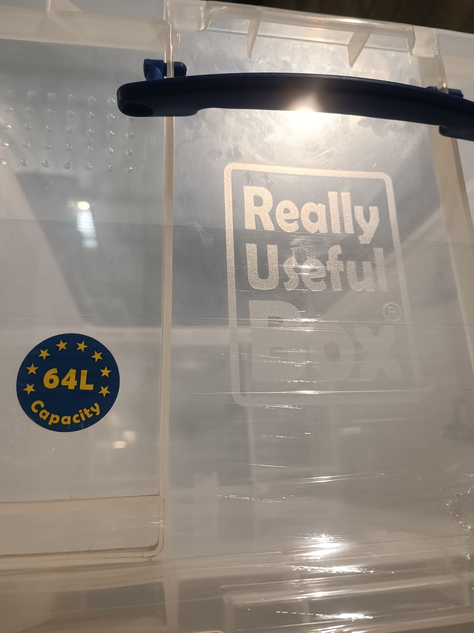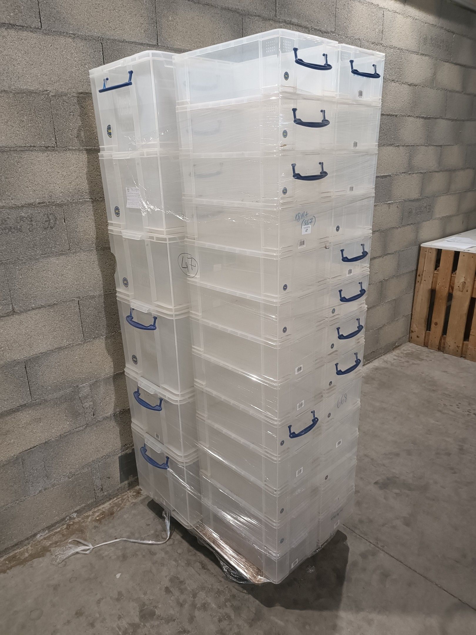 Lot de 32 Caisses en plastique transparent sans couvercle REALLY USEFUL BOX 26X 12L 14,5x44x26, 4X 64L 28,5x66,5x42,5 et 2X 84L 35,5x66,5x42,5