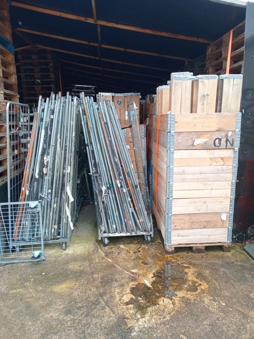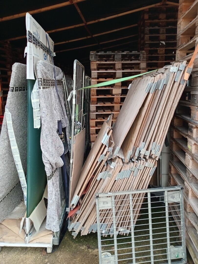 palettes en bois ( non fixés), rehausseurs et rolls ( démont…