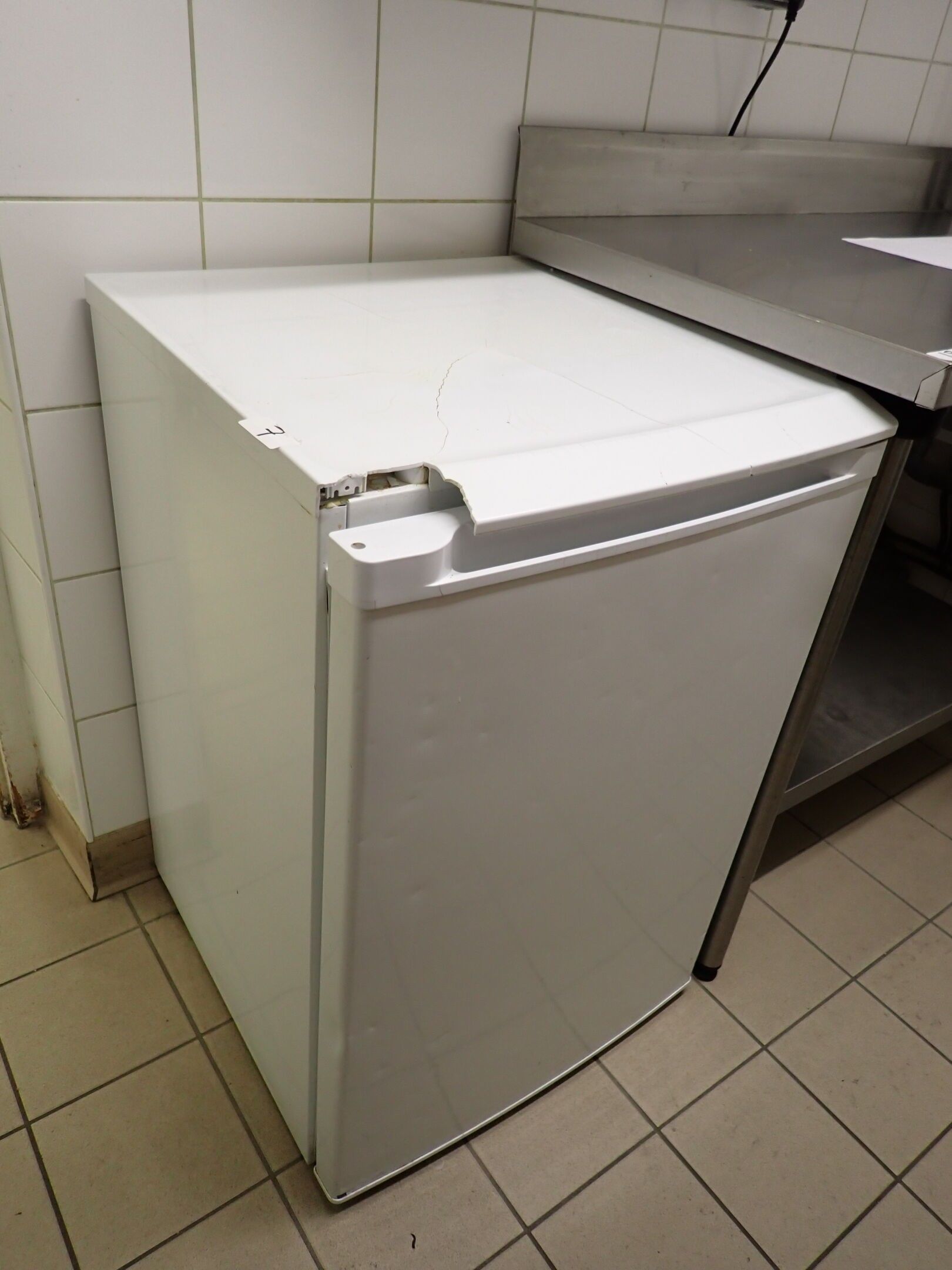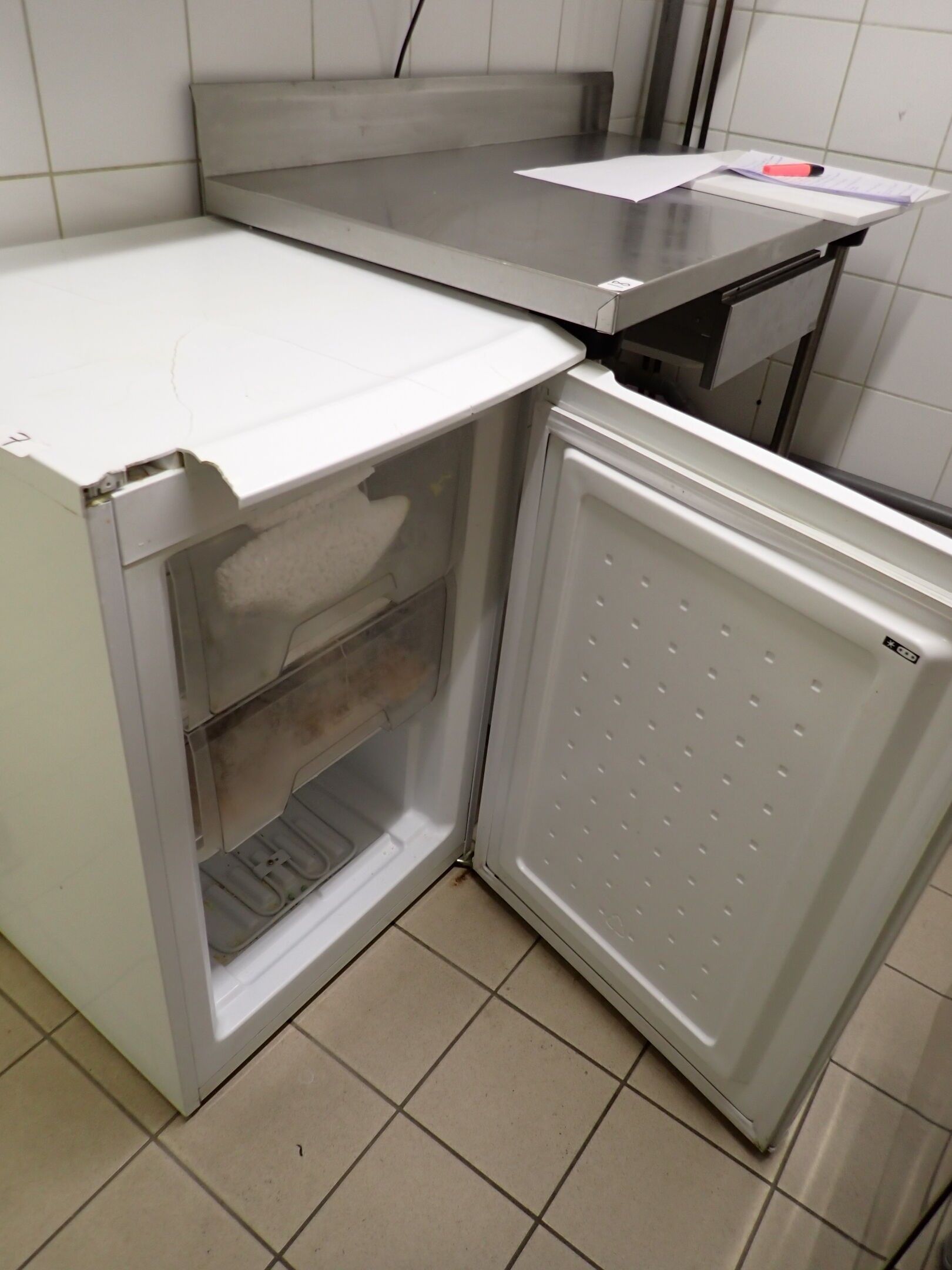 Congélateur table top 3 tiroirs (dont 1 manquant), 54x57xh84, plateau cassé, Lot judiciaire, Mise à prix 20
