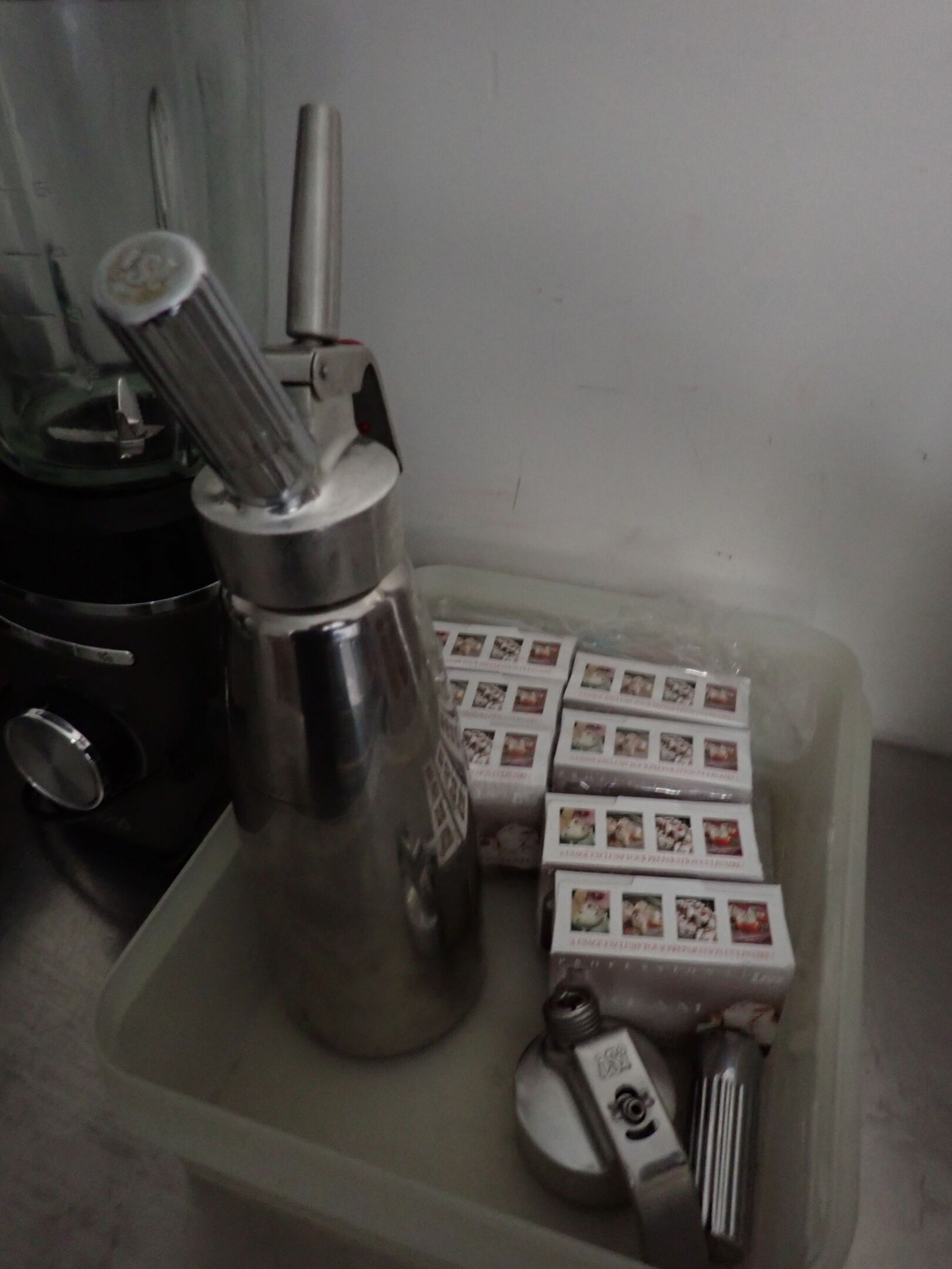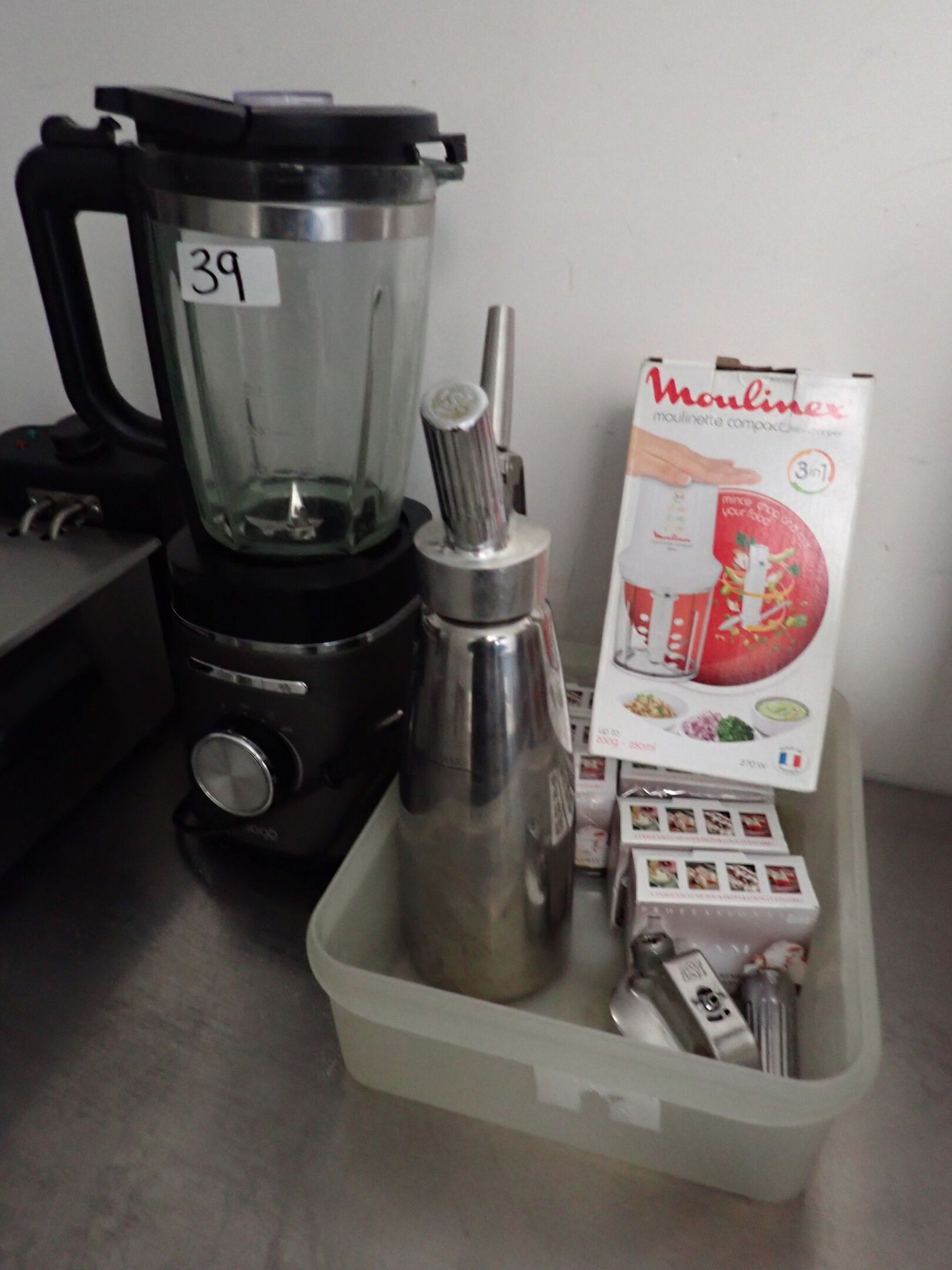 Robot mixeur MIOGO, mixeur MOULINEX, bombonne de chantilly avec cartouches, situés au 1er étage, escaliers, Lot judiciaire, Mise à prix 30