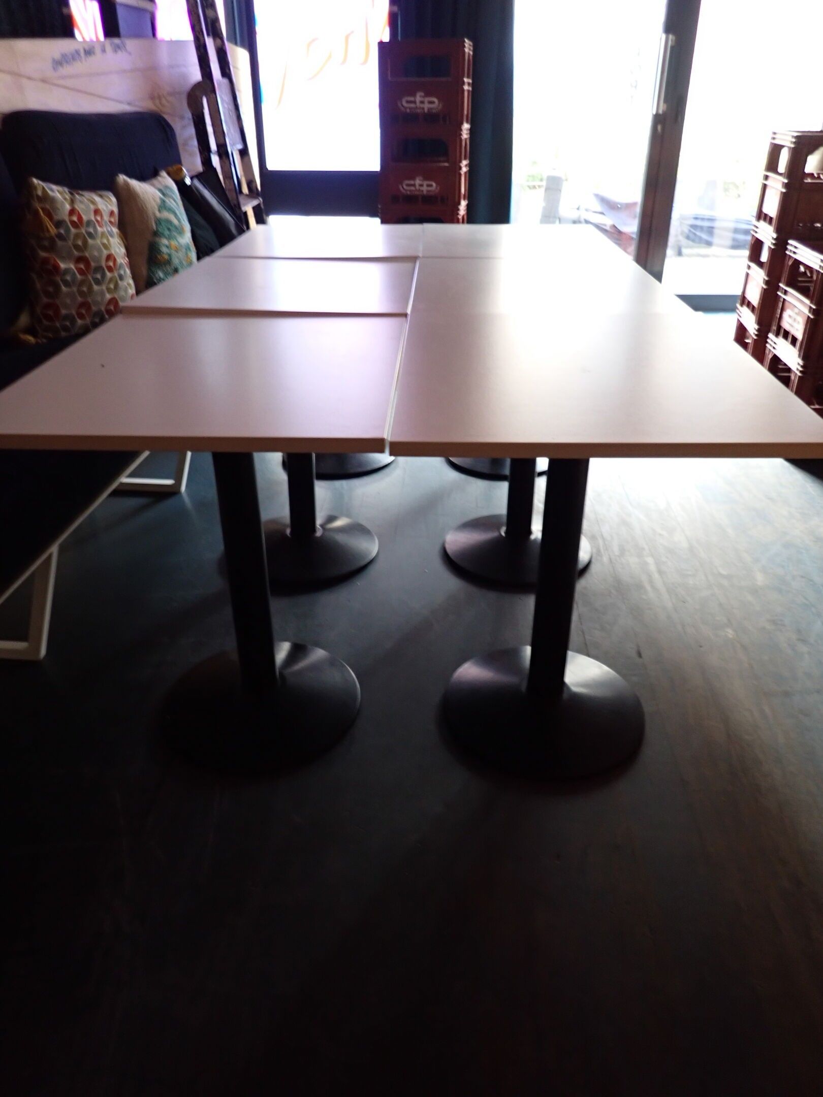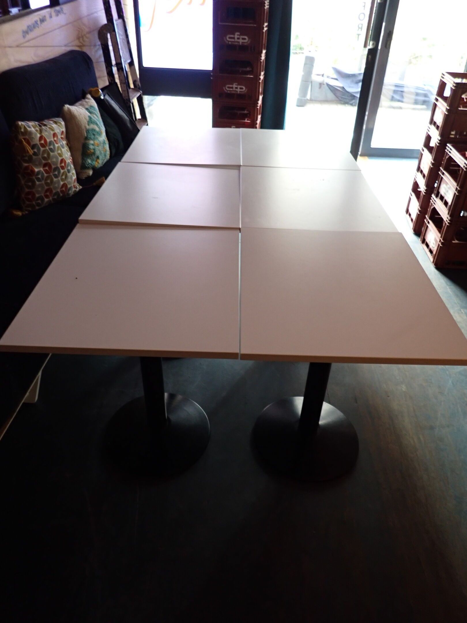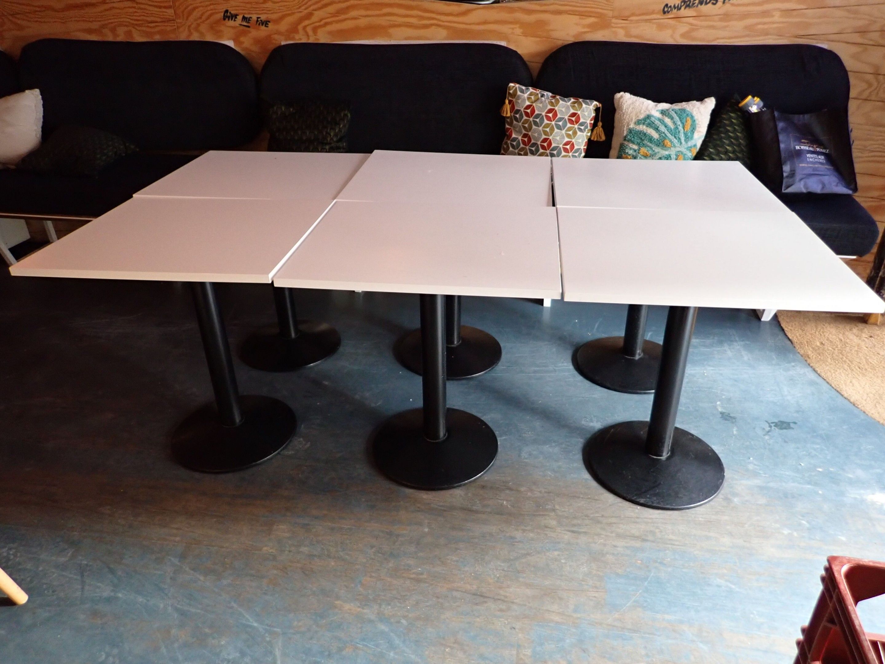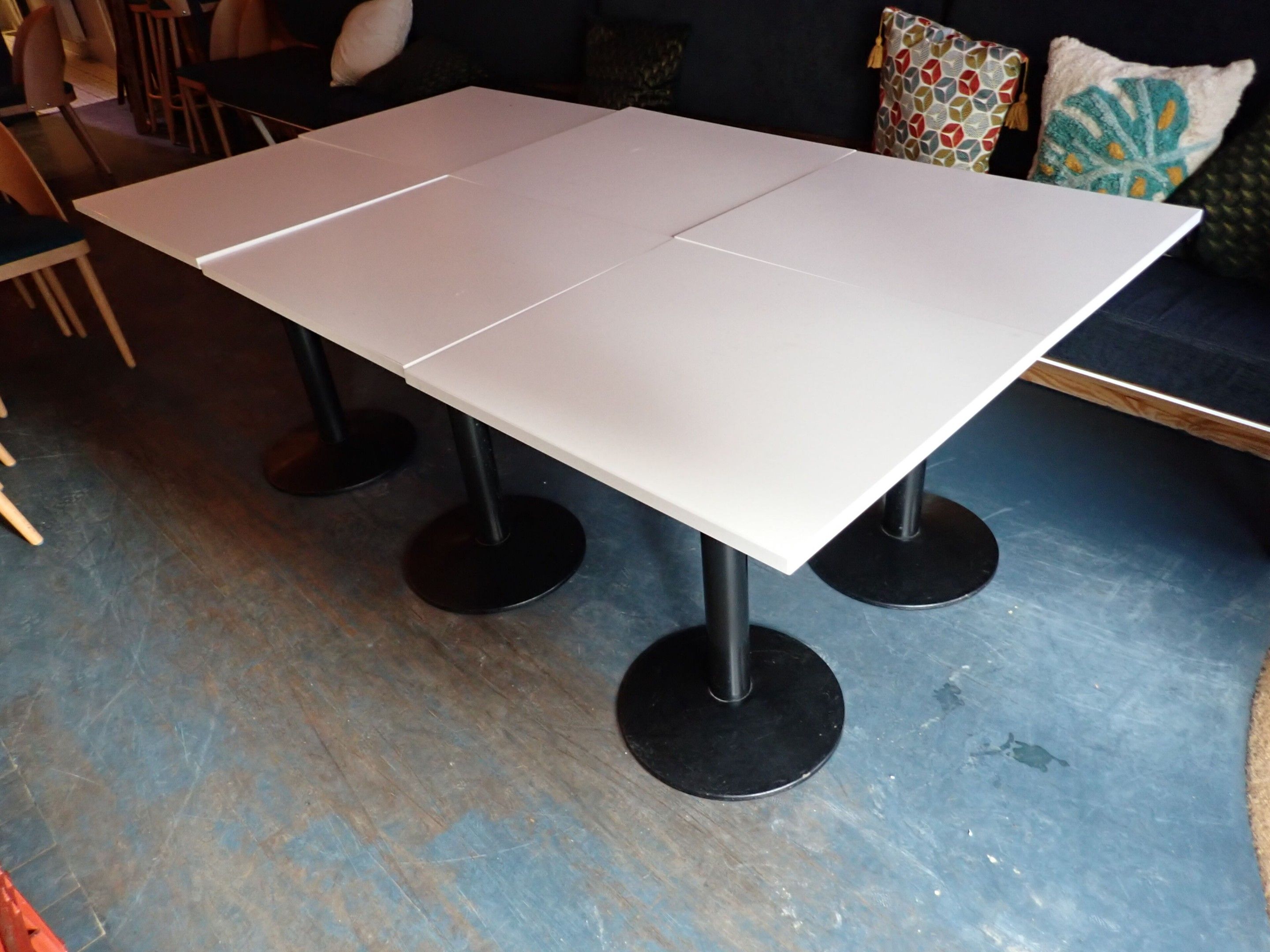 6 tables plateau blanc pied central métal noir 60x70xh75, Lot judiciaire, Mise à prix 50