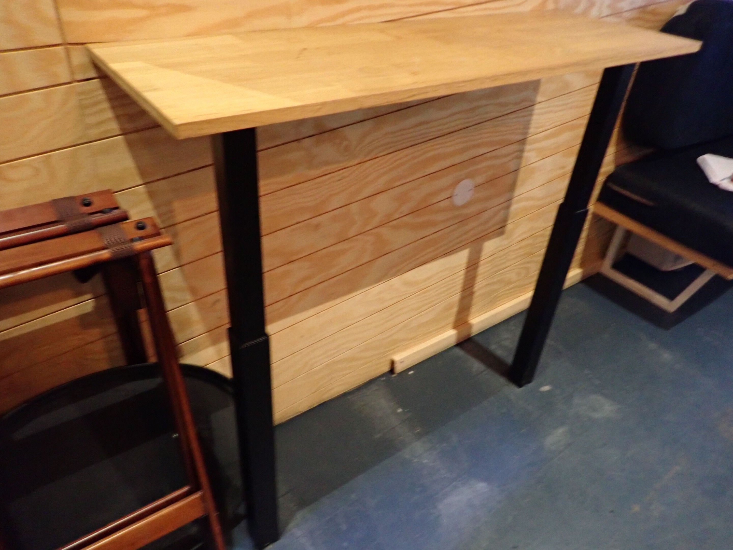 Table console haute murale 2 pieds métal noir, 120x40xh112, à démonter, Lot judiciaire, Mise à prix 10