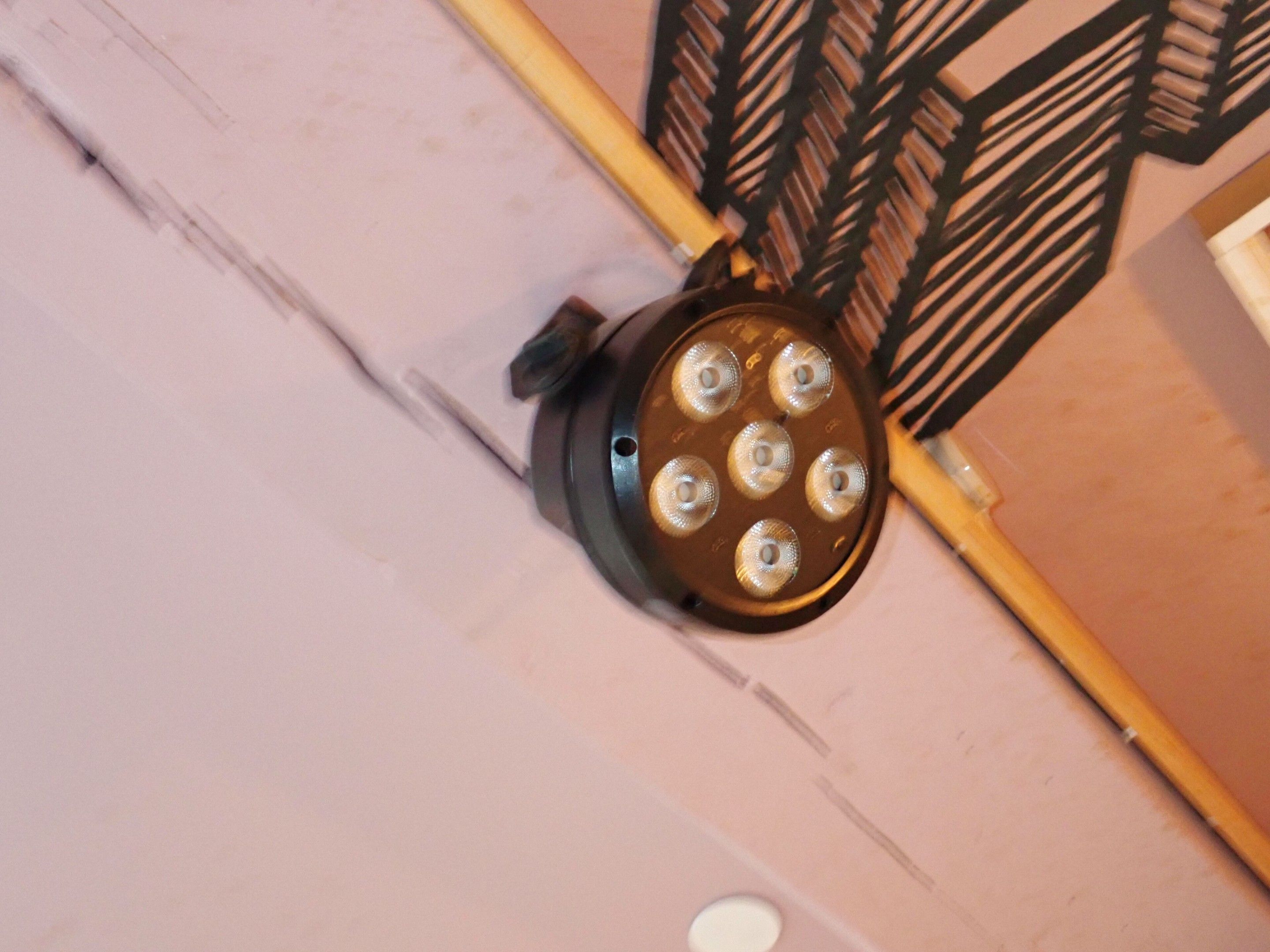 4 projecteurs lyre COMEO PAR 6, vendus sans les câbles, situés au rdc, démontage et échelle parisienne à prévoir, Lot judiciaire, Mise à prix 50