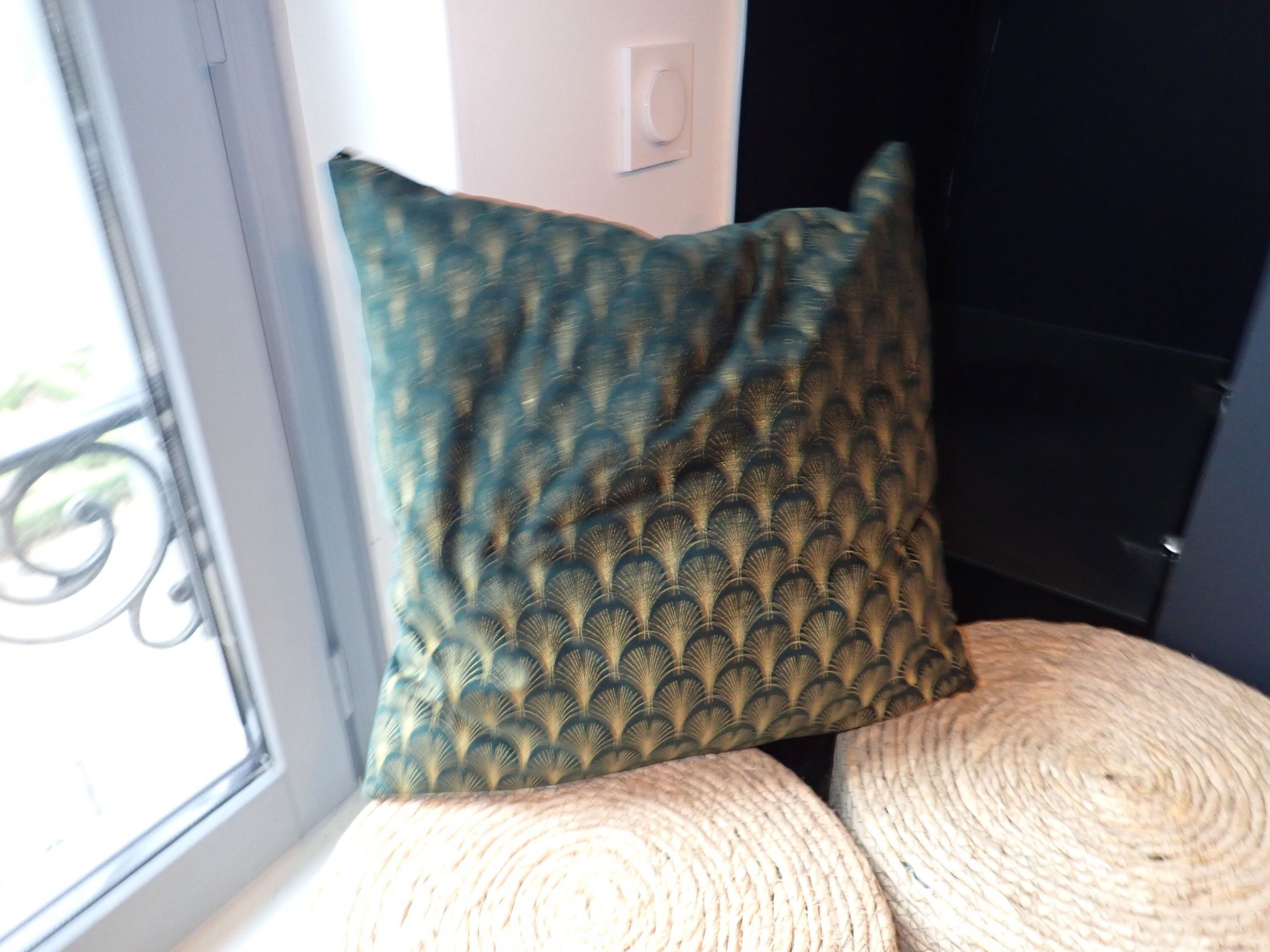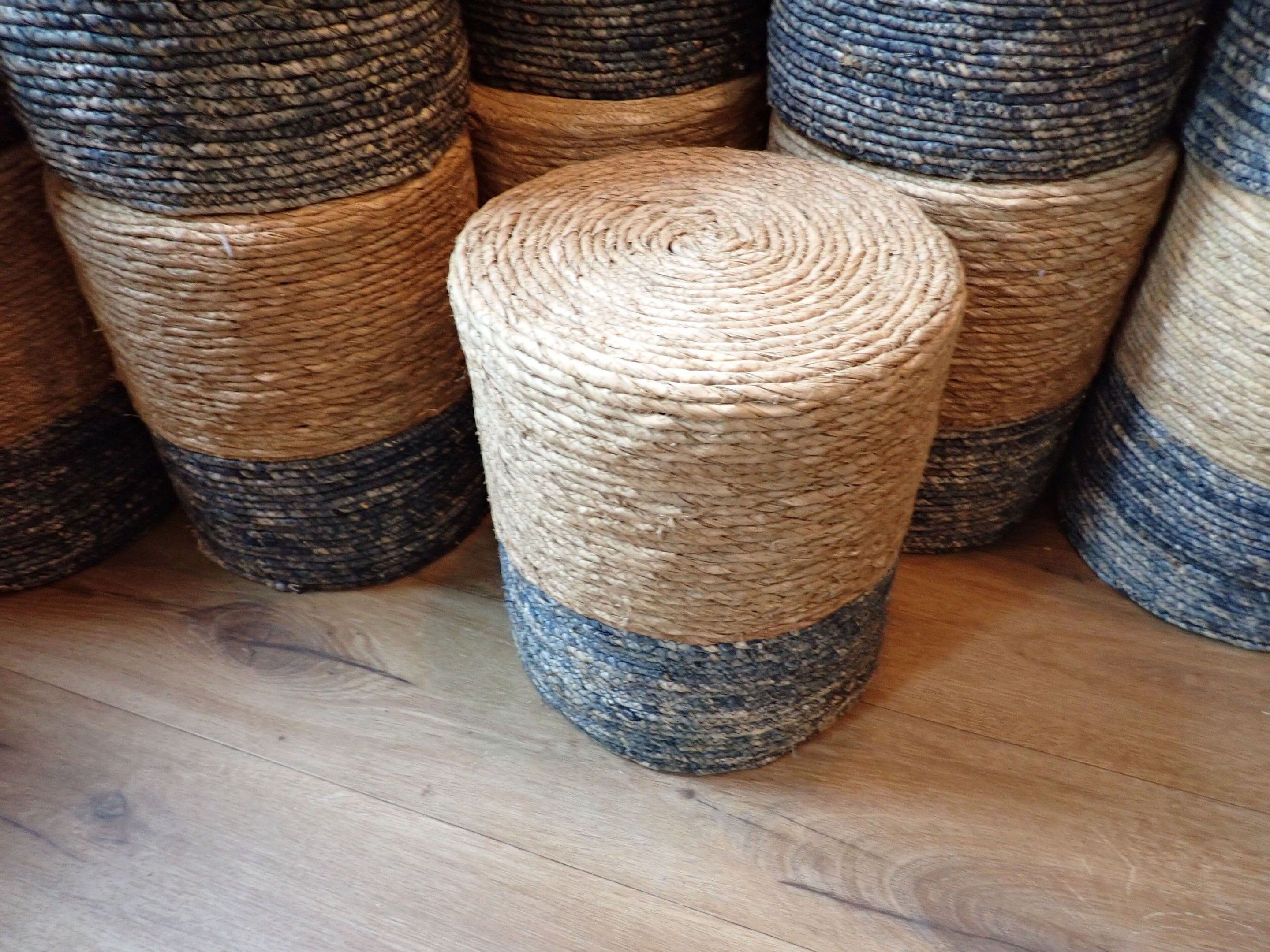 15 poufs rotin beige et bleu avec 1 petit coussin, 1er étage…