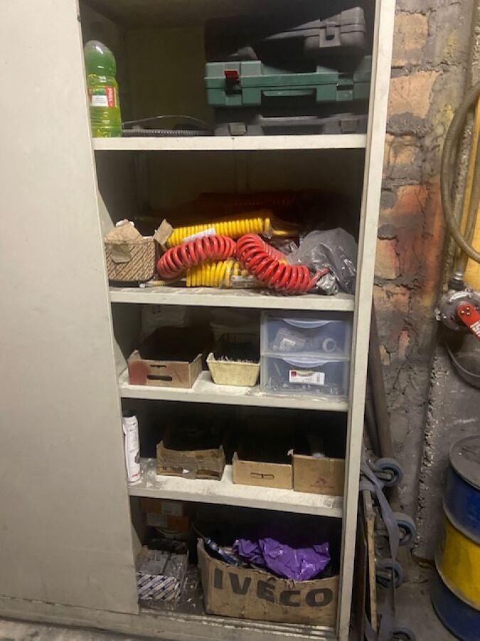 un lot de jerricans, un petit lot d'outillages et un lot d'accessoires pour camion comprenant tubes air, garde boues, etc ...., une échelle, un lot de débarras divers, un lot de pneus - produits polluants, un rack métallique et une armoire métallique et un réfrigérateur table top - MATERIEL SE TROUVANT A VILLENEUVE LE ROI - visite dans les locaux à villeneuve le roi le 13 novembre de 14h à 15h - vente en salle ou en live le 20 novembre à 16h30 - récupération impérative le 27 novembre de 10h à 12h - en cas de non récupération à cette date, le matériel sera considéré comme abandonné - VILLENEUVE LE ROI - adresse exacte communiquée la veille de la vente