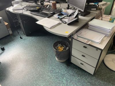 deux bureaux, une armoire métallique, un caisson, un fauteui…