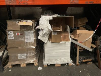 un lot de cartons, tissu, adhésifs, sac de sable, brochures,…