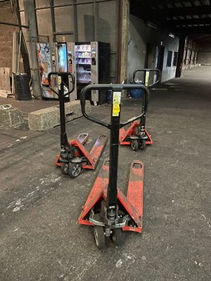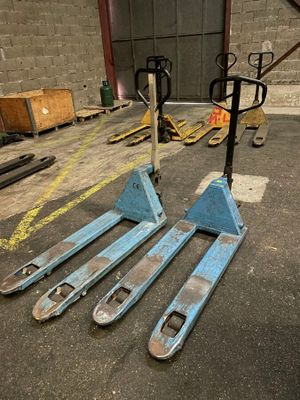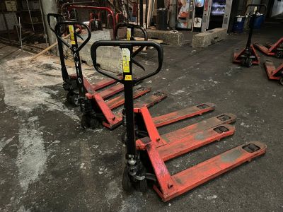 quatre transpalettes rouge en l'état - visite dans les locau…