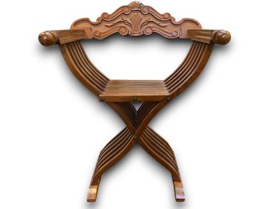 Chauffeuse en bois mouluré à dossier droit et garnie d'un ti…