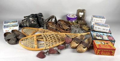 Un lot d'objets anciens destinés au sports de montagne ou fa…