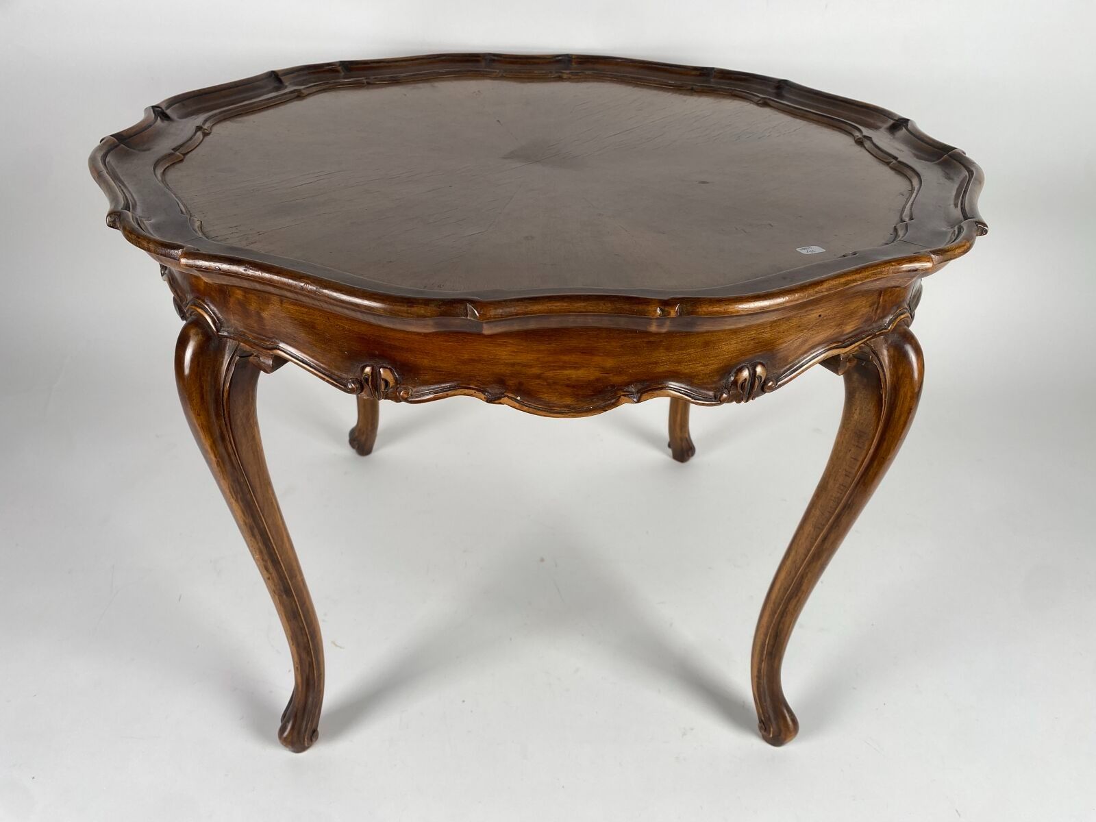 Table basse en noyer à plateau mouvementé de style Louis XV. Hauteur 54 cm / Diamètre 72 cm