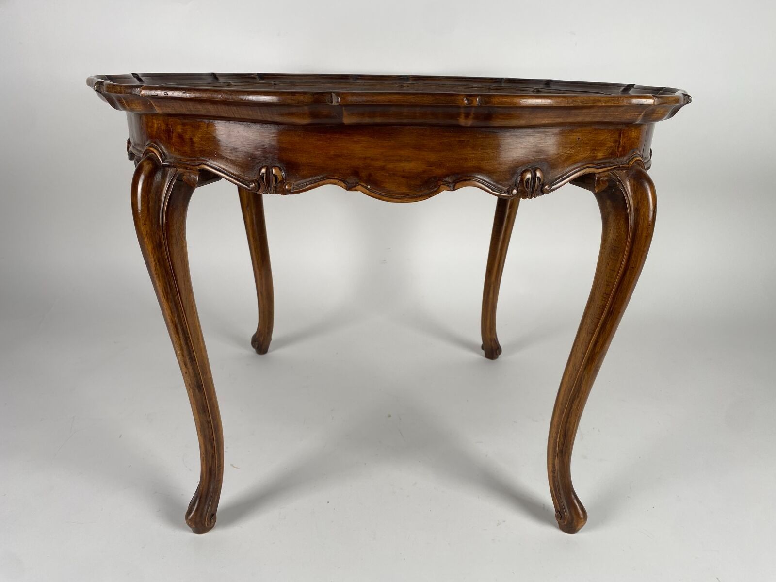Table basse en noyer à plateau mouvementé de style Louis XV.