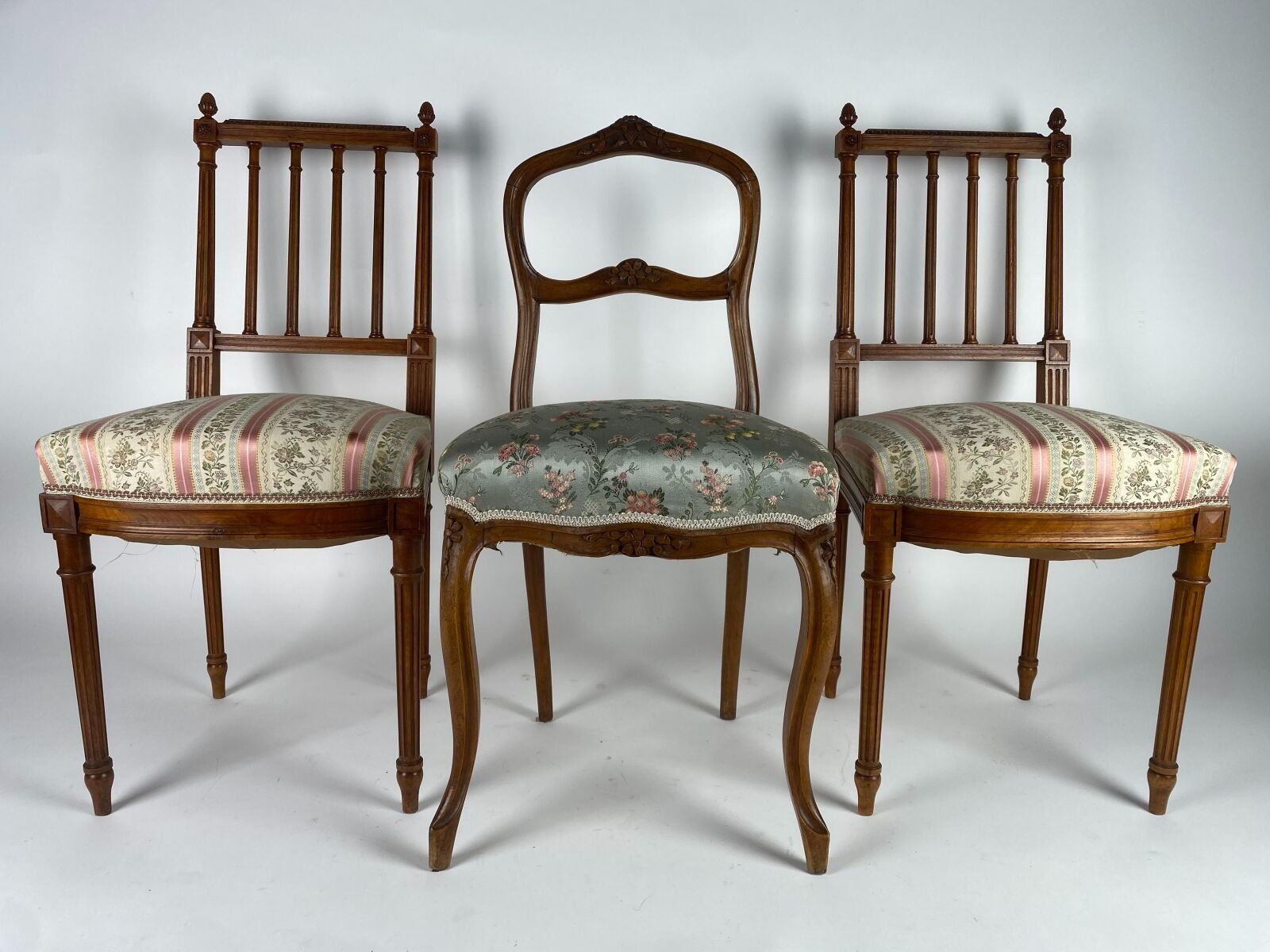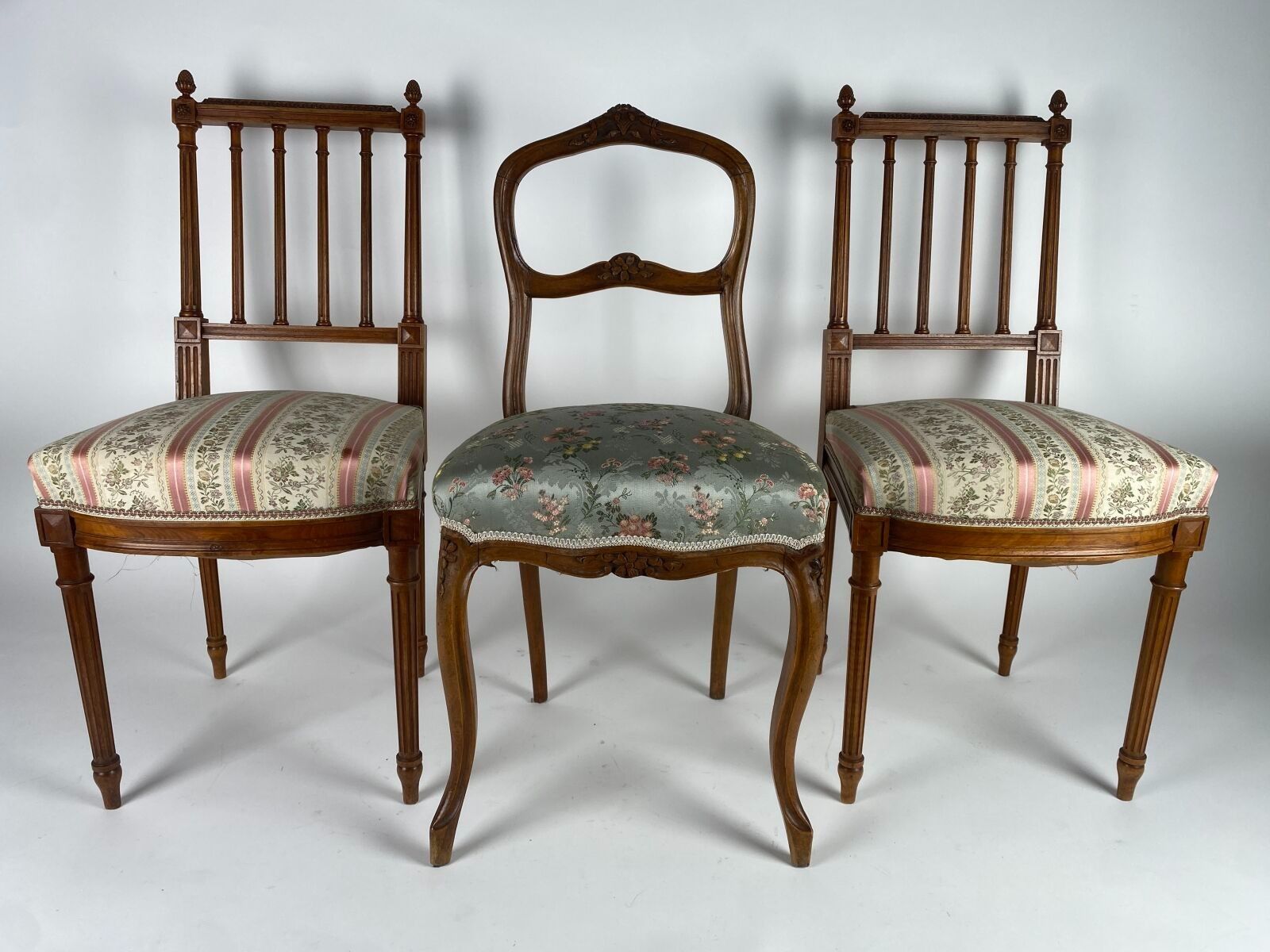 On y joint une chaise en bois mouluré et sculpté de fleurettes. Style Transition