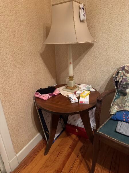 Deux guéridons tripodes, style Scandinave. Hauteur : 58 cm
