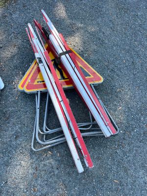3 panneaux trottoir TRAVAUX et 2 barrières de sécurité trava…