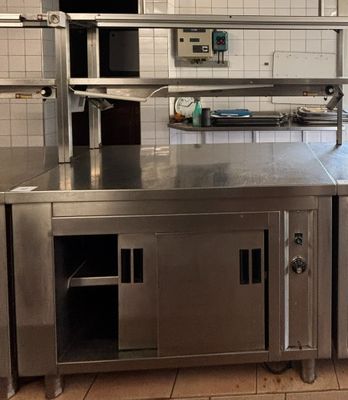 Chauffe-assiettes inox (marque et modèle non visibles), (lon…