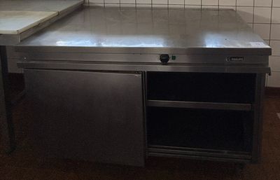 Meuble inox, deux portes, (longueur : 180cm, largeur : 70cm,…