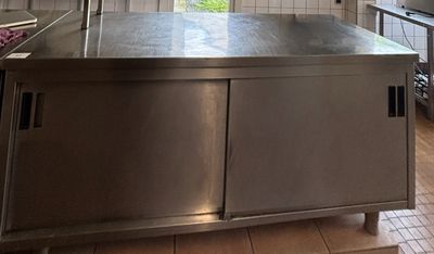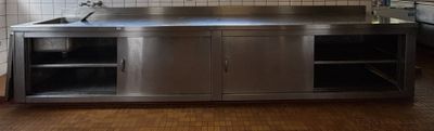 Meuble bas en inox, portes coulissantes, deux niveaux, (long…