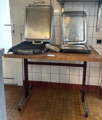 Lot comprenant : - table rectangulaire plateau inox, pièteme…