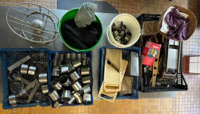 Divers ustensiles de cuisine dont : - râpes à légumes - empo…