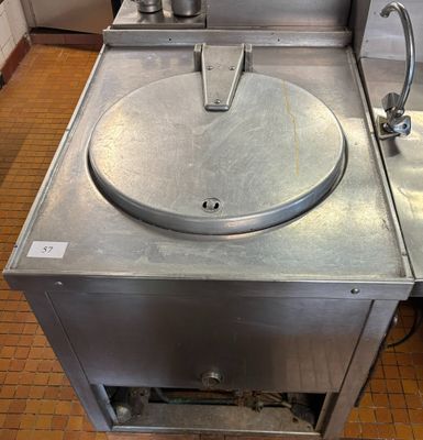 Marmite à gaz inox (marque et modèle non visibles), (longueu…