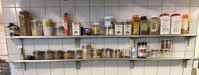Etagère murale inox, (longueur : 250cm, largeur : 40cm).