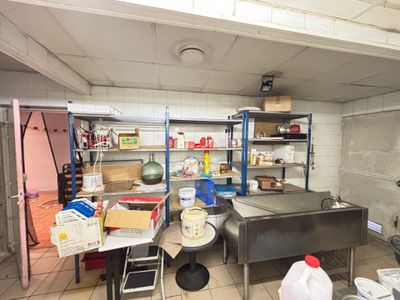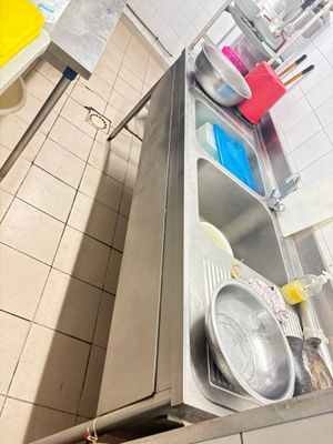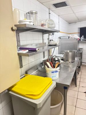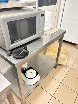 Table en inox à dosseret environ 1,5 mètres et deux étagères…