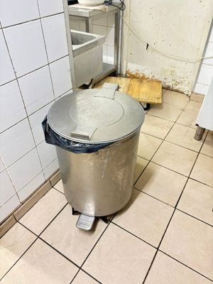 Poubelle en inox, partie de robot BOSH, rouleur en bois