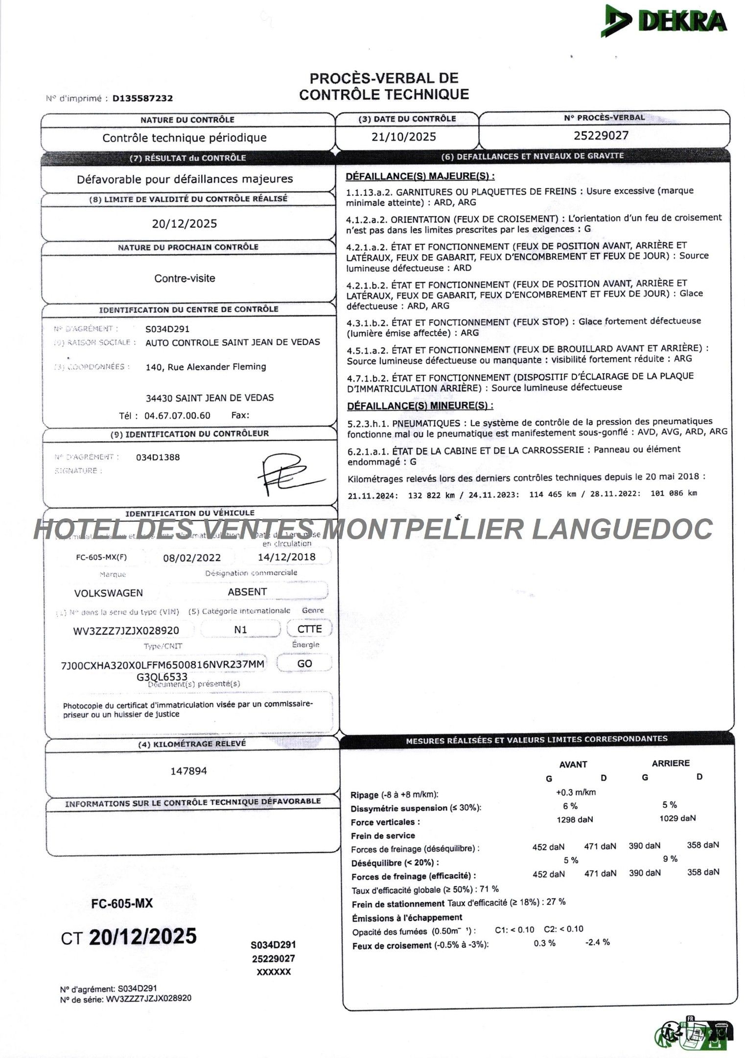 CTTE BENNE VOLKSWAGEN Modéle : TRANSPORTER 2.0TDI 150 CV Année : 2018 FC-605-MX Type constructeur : 7J00CXHA320X0LFFM6500816NVR237MMG3QL6533 N°de Série : WV3ZZZ7JZJX028920 Date de 1ere mise en service 14/12/2018 Energie : GO Puissance : 7 CV Kilomètres Compteur non garantis : 147894 Contrôle Technique : Oui TVA récupérable Sans Carte grise originale