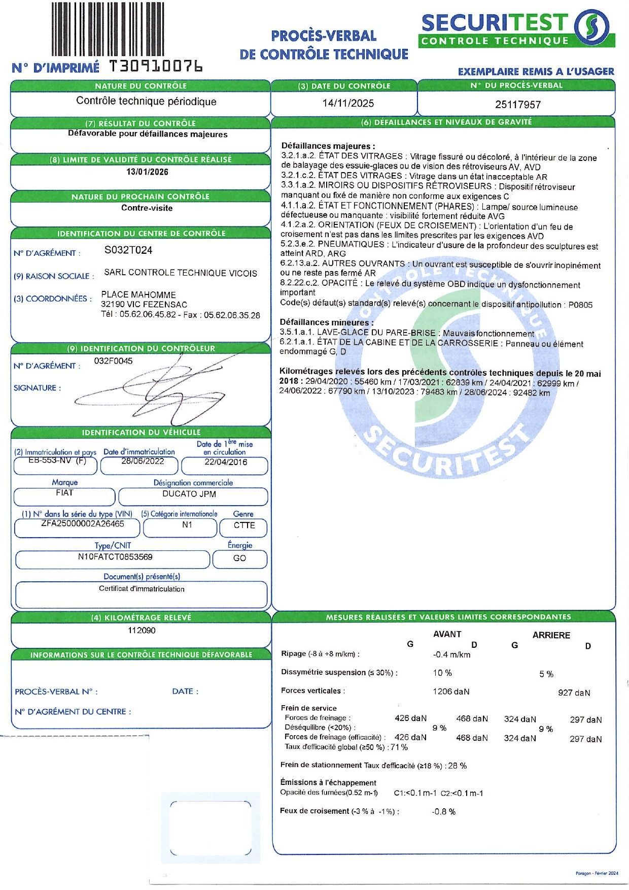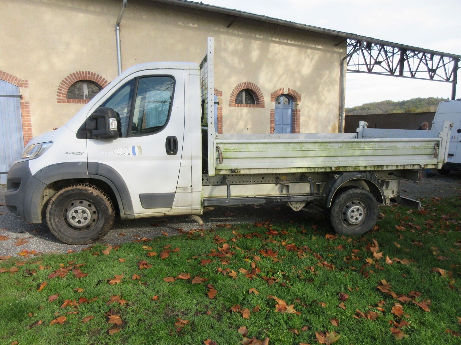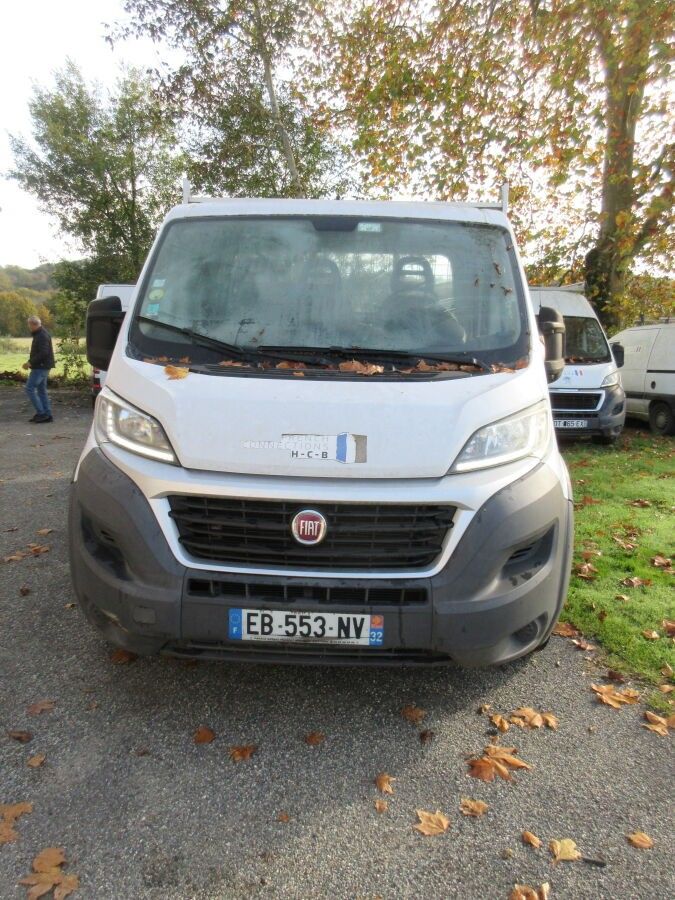 FIAT DUCATO BENNE PACK 3.5L 2.0 MULTIJET 115CV - Genre : CTTE - Carrosserie : BENNE - Energie : GO - Kilométrage compteur : 112090 - 1ere M.E.C : 22/04/2016 - Puissance : 8 - Tva récupérable - Observations : Enlèvements impératifs des lots le mercredi 26 NOVEMBRE 2025 de 9h à 12h (ou à l'issue de la vente si les conditions de paiement sont remplies). - Pneus usés à 50%, pare-brise fendu, vitre arriere cassée - Equipements : attelage ; avec contrôle technique ; batterie HS