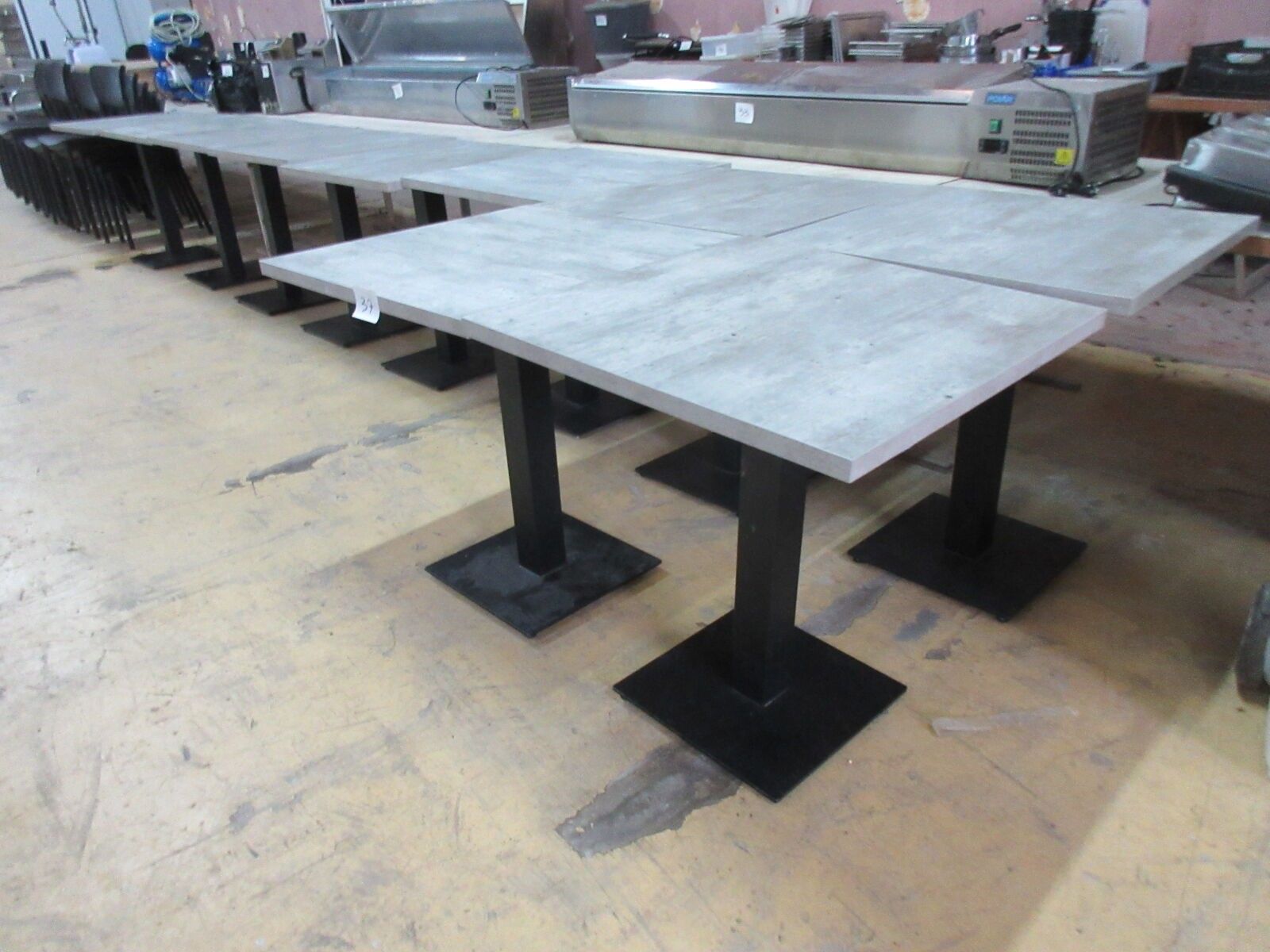 10 tables de restaurant avec plateau en mélaminé beige et piétement en métal noir (70x70x70cm)