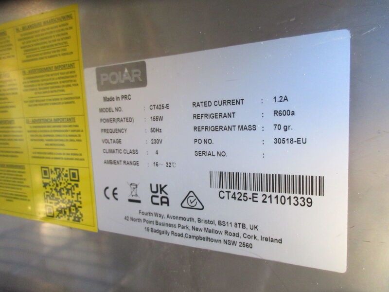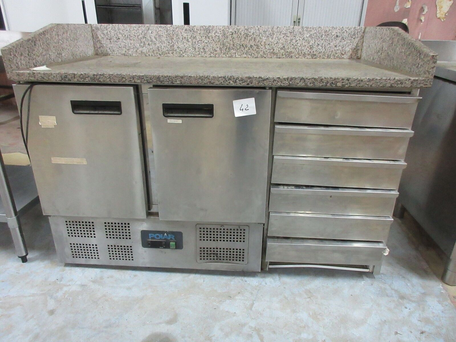 1 enfilade réfrigérée à 2 vantaux et 6 tiroirs, dessus marbre, POLAR CT 425-E Gaz R600A (tiroirs non réfrigérés)(106x142x70cm)